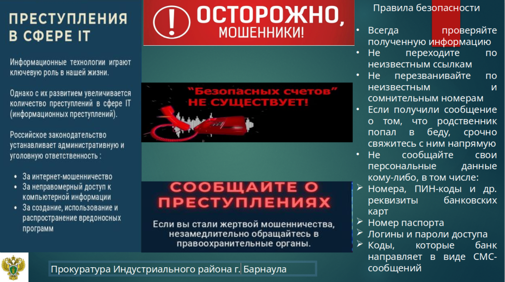 Прокуратура Алтайского края информирует о действиях телефонных мошенников