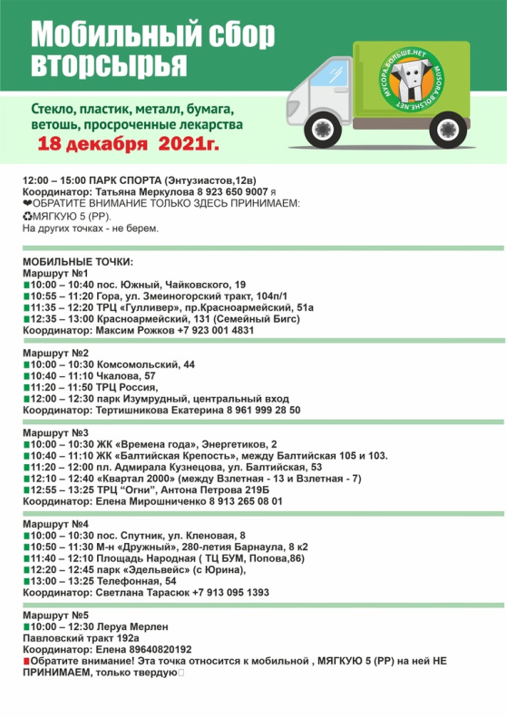 18 декабря в Барнауле традиционно состоится экологическая акция по раздельному сбору отходов «Разделяя, сохраняй!».