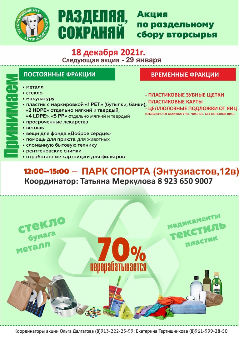 18 декабря в Барнауле традиционно состоится экологическая акция по раздельному сбору отходов «Разделяя, сохраняй!».