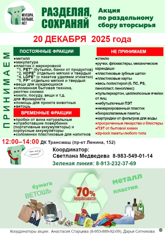 20 декабря в Барнауле состоится финальная в этом году акция по раздельному сбору отходов «Разделяя сохраняй!»