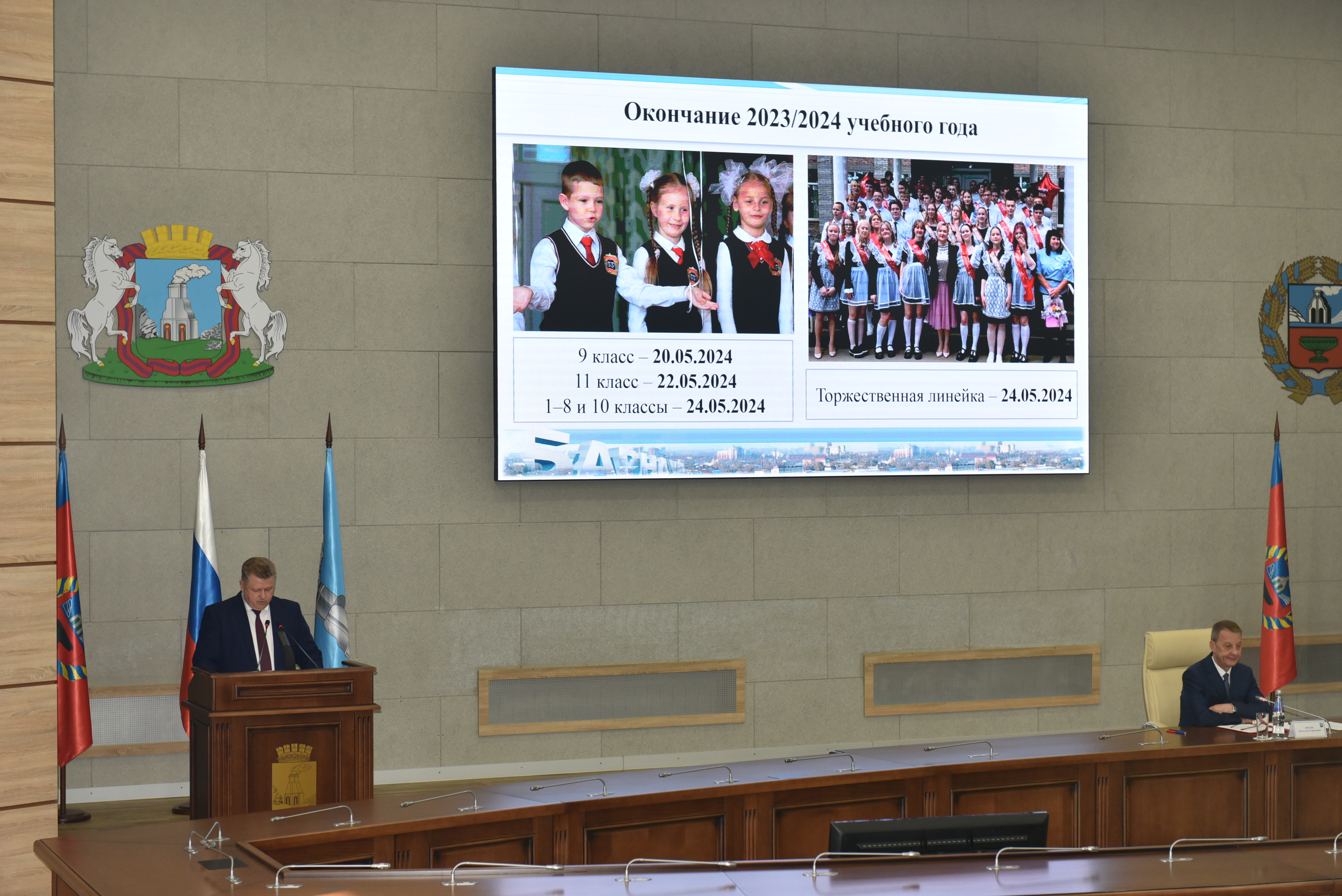 С информацией о предварительных итогах 2023-2024 учебного года и подготовке образовательных организаций к следующему учебному году выступил председатель городского комитета по образованию Андрей Муль.