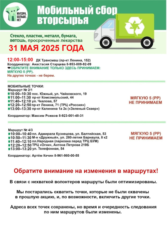 Все вторсырье, собранное на акции, будет отправлено в переработку. Подробнее об акции можно узнать в сообществе НКО «Мусора.Больше.Нет» в социальных сетях.