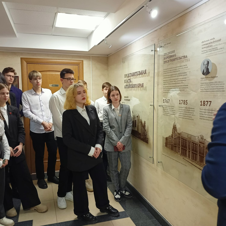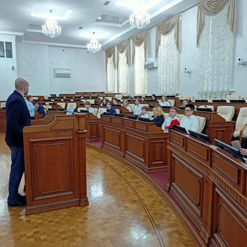 Школьники прослушали историю о возрождении парламентаризма на Алтае, побывали в зале, где проходят сессии депутатов Законодательного Собрания, в ходе игры ответили на вопросы на знание государственного устройства с применением компьютерной техники.