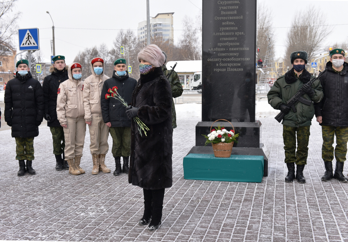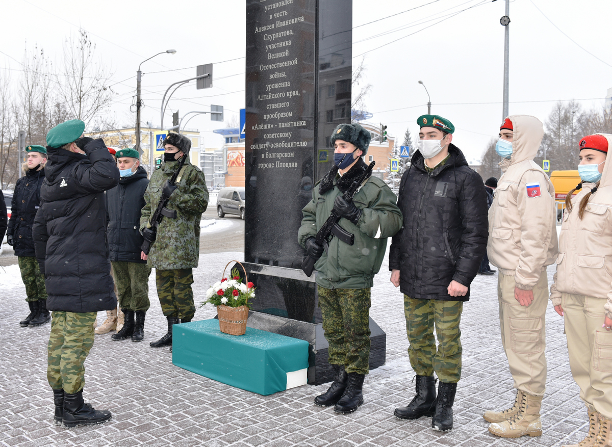 9 декабря на аллее по улице Профинтерна в Барнауле прошло торжественное мероприятие, посвященное Дню Героев Отечества и присвоению аллее имени участника Великой Отечественной войны Алексея Скурлатова, ставшего прототипом памятника советскому воину-освободителю в болгарском городе Пловдиве. Знаменитый на весь мир русский солдат родился и всю жизнь прожил в Алтайском крае.
