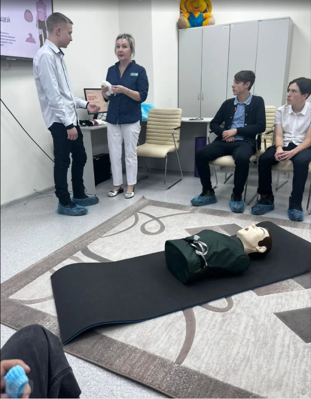 Перед началом обучающих занятий главный врач центра Ирина Молчанова провела обзорную экскурсию по медицинскому учреждению, рассказала о специфике его работы. Затем первая группа ребят отправилась на занятия по оказанию первой помощи. Специалисты центра подробно рассказали и показали на практике как необходимо оказывать первую помощь людям, оказавшимся в различных экстренных ситуациях.
