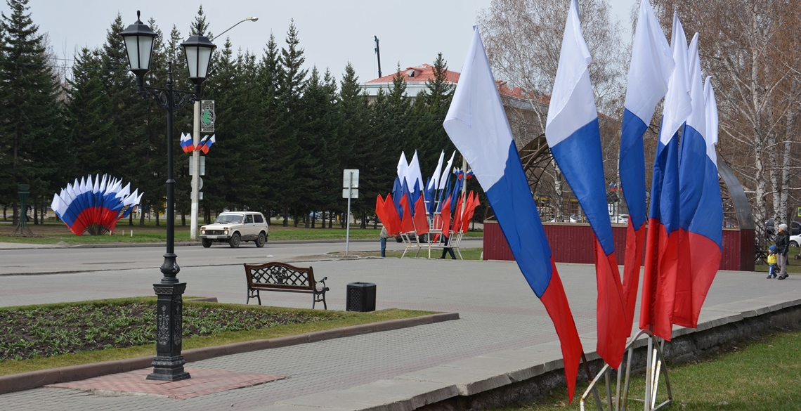 К празднованию годовщины Великой Победы на основных транспортных магистралях Барнаула разместили конструкции из флагов. Ими украшают площади Победы, Октября, Советов, Мира, проспекты Строителей, Социалистический, Ленина, Красноармейский, пешеходную зону улицы Мало-Тобольской.