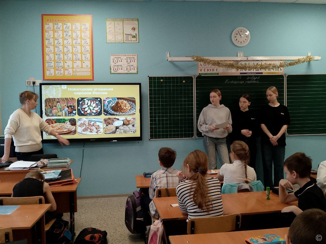 Ученики узнали интересные факты о происхождении традиционных новогодних символов и уникальных обычаев, присущих различным народам, населяющим нашу Родину.