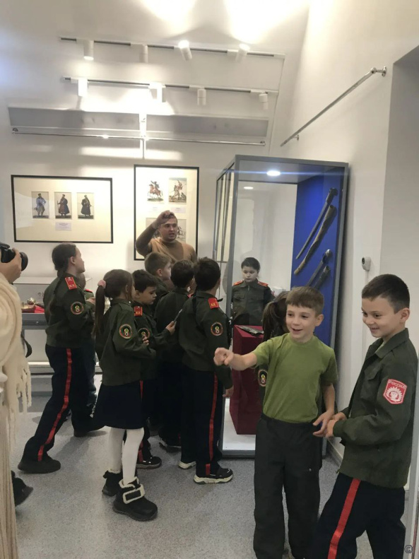 В музее ребятам рассказали о том, какую роль казачество сыграло в истории Российской империи. Продемонстрировали более 150 подлинных предметов, раскрывающих историю сословия, стоявшего на защите Отечества. В их числе: