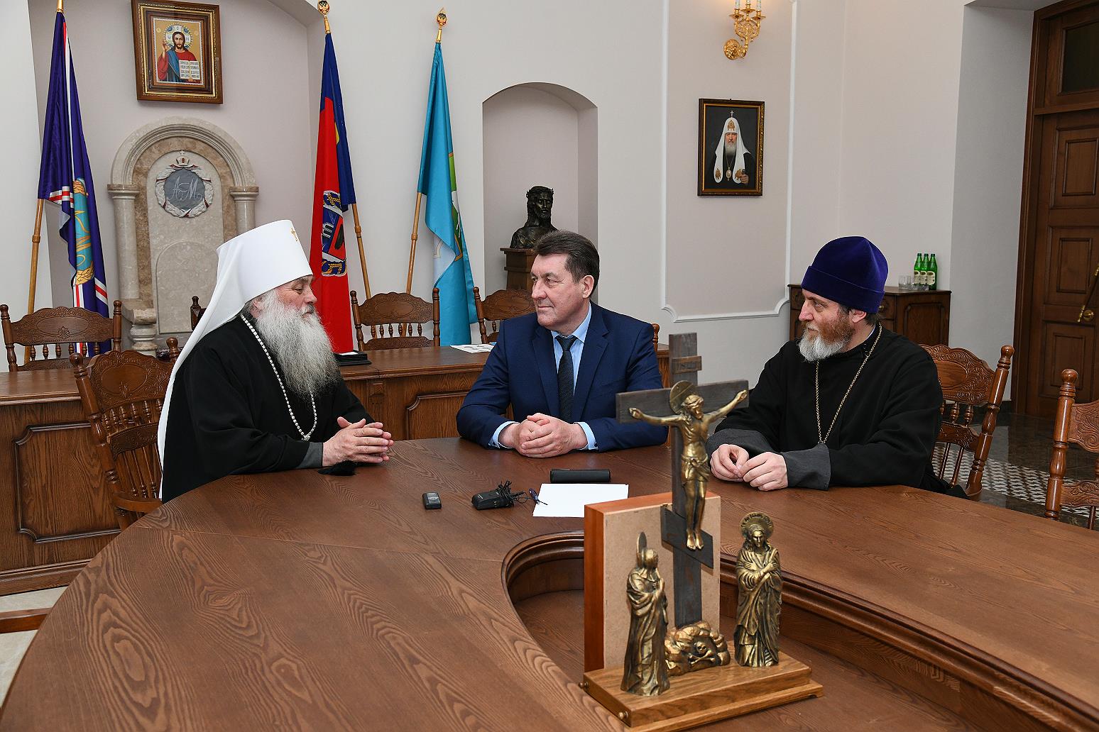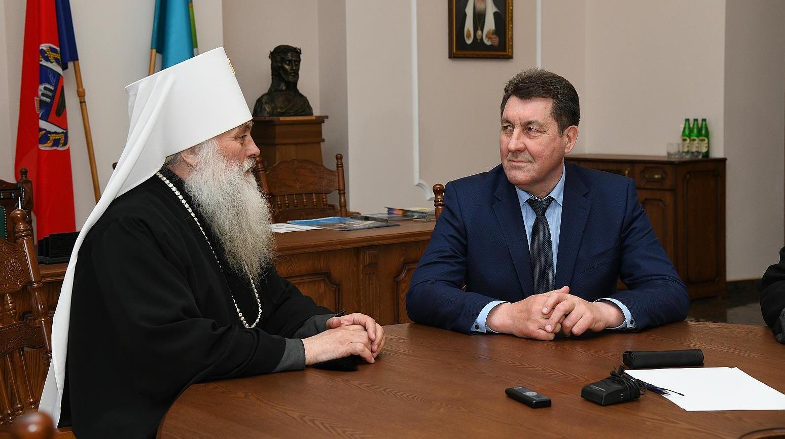 Глава города Сергей Дугин и Митрополит Барнаульский и Алтайский Сергий подвели итоги работы по передаче здания Кресто-Воздвиженской Церкви Русской Православной Церкви.