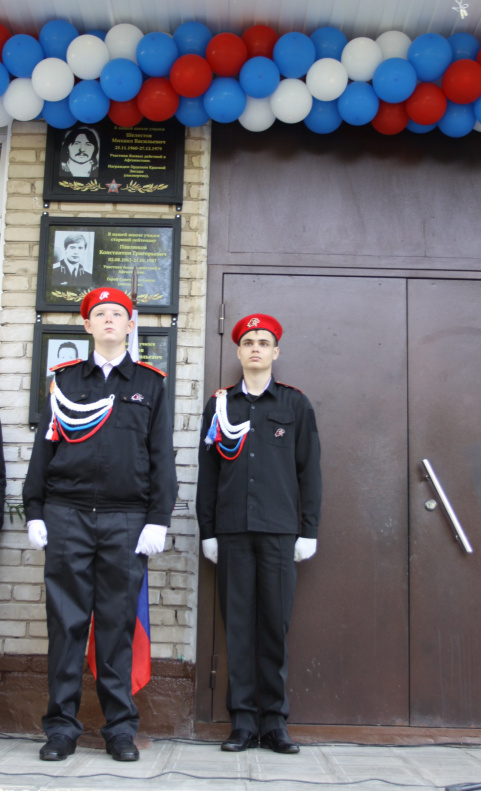 Теплые слова приветствия и поздравления прозвучали от выступавших к первоклассникам, будущим выпускникам, родителям и педагогам. Право открыть именную доску на здании школы было предоставлено Сергею Казанцеву и директору школы Василию Губанову.