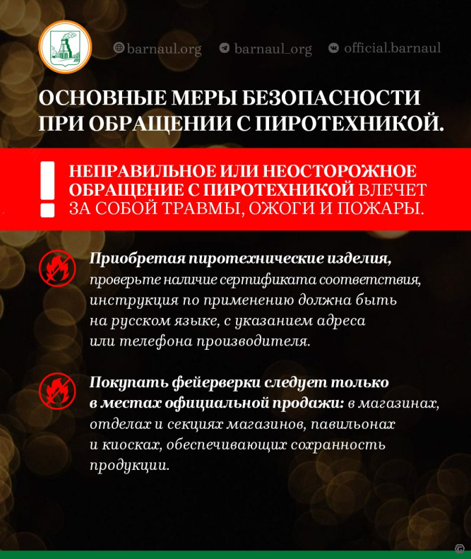 В преддверии новогодних праздников барнаульцам напоминают правила использования пиротехнических средств