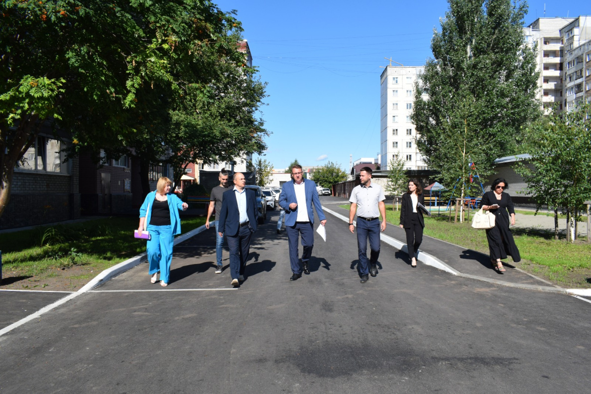 Глава администрации Денис Летягин, депутат Барнаульской городской Думы Дмитрий Денисов, начальник отдела коммунальных предприятий и услуг комитета жилищно-коммунального хозяйства города Барнаула Владимир Баев встретились с представителями подрядной и управляющей организациями, жителями дома для обсуждения работ по благоустройству двора по ул.Попова, 129.