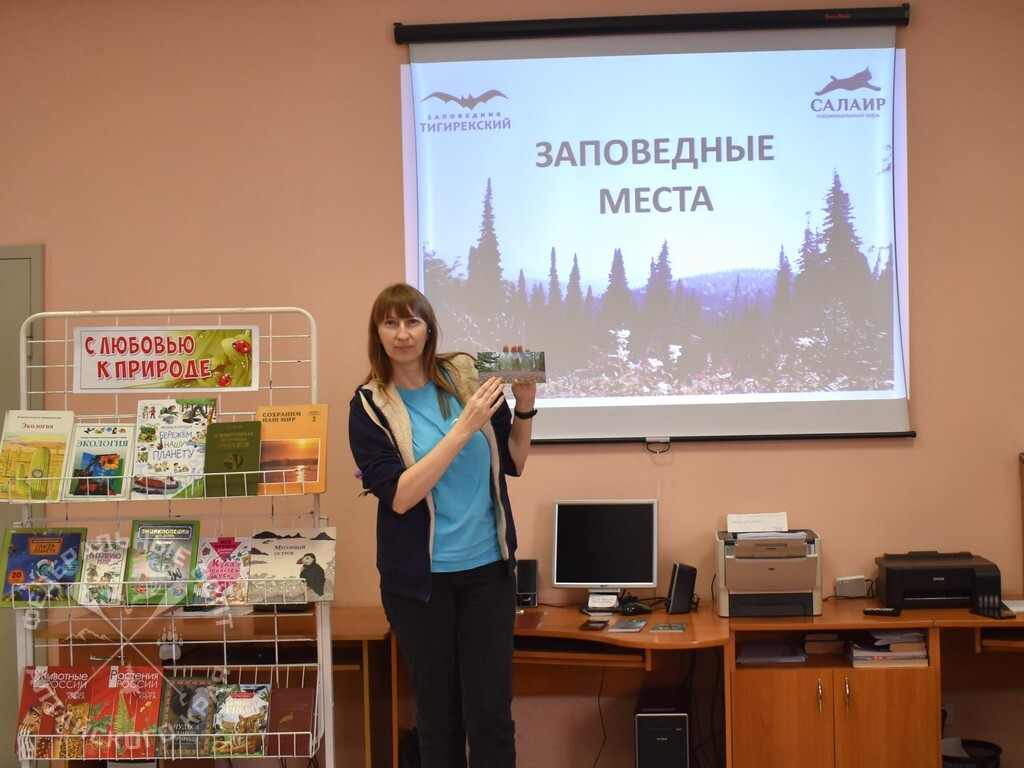 В библиотеке №14 состоялся эко-урок, на котором перед школьниками выступила Олеся Южкова, методист по экологической работе заповедника «Тигирекский».