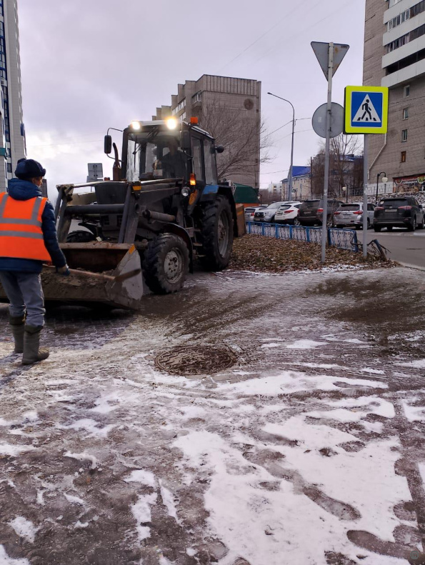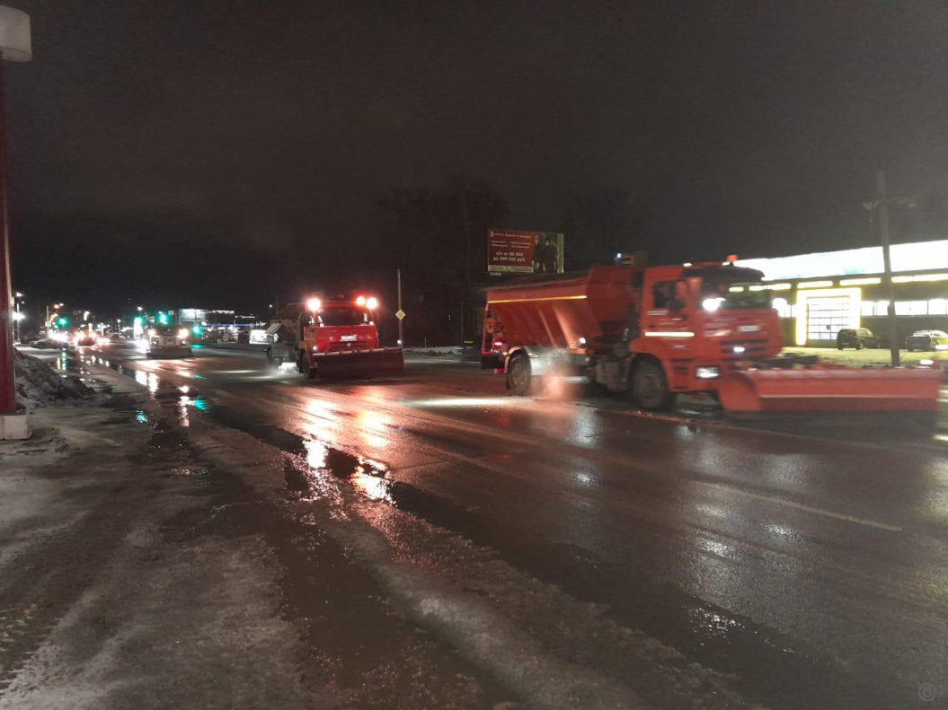 В связи с понижением температуры воздуха и обильными осадками в виде дождя и мокрого снега накануне наблюдается подмерзание поверхностей дорог и тротуаров. Для безопасности передвижения транспорта и пешеходов дорожная служба проводит посыпку улично-дорожной сети.