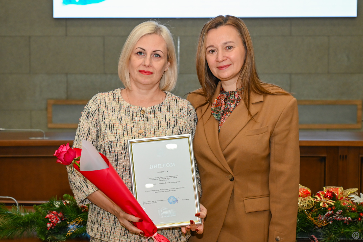 По традиции накануне Нового года подводятся итоги городского конкурса «Лучшее территориальное самоуправление», цель которого содействие развитию института ТОС, повышение активности граждан в решении вопросов местного значения. Оксана Финк вручила дипломы победителям и участникам конкурса. Так, пятерку победителей конкурса возглавила председатель Совета ТОС поселков Черницк и Мохнатушка Центрального района Оксана Петрякова. Почетные второе, третье, четвертое и пятое места заняли Евгения Шаталова (ТОС Красноармейского микрорайона Железнодорожного района), Анна Кныш (ТОС Гущинского микрорайона Ленинского района), Виталий Лаптев (ТОС «Научный» Ленинского района, Ольга Дроздова (ТОС микрорайона «Авиатор» Индустриального района). Дипломы участников конкурса вручены руководителям 10 органов ТОС.