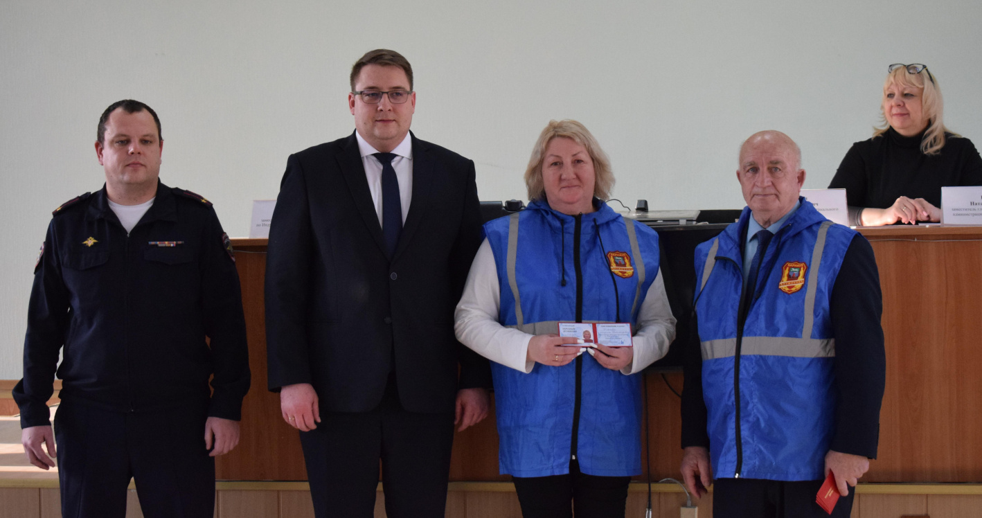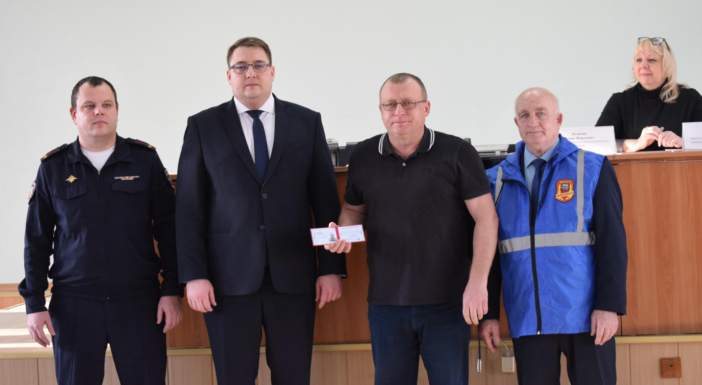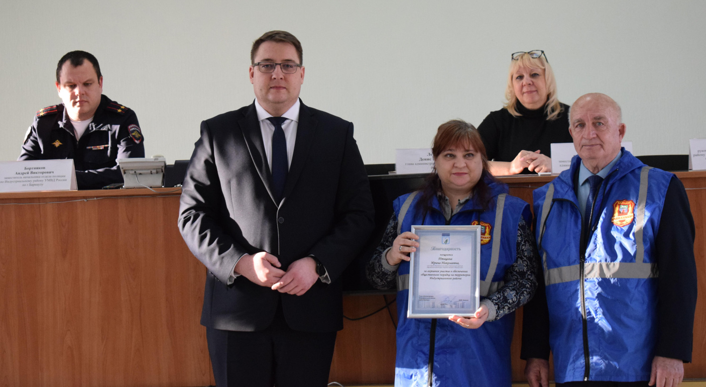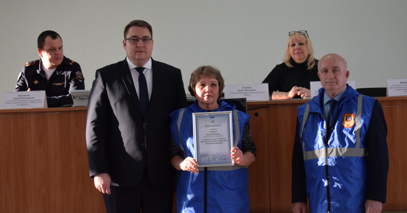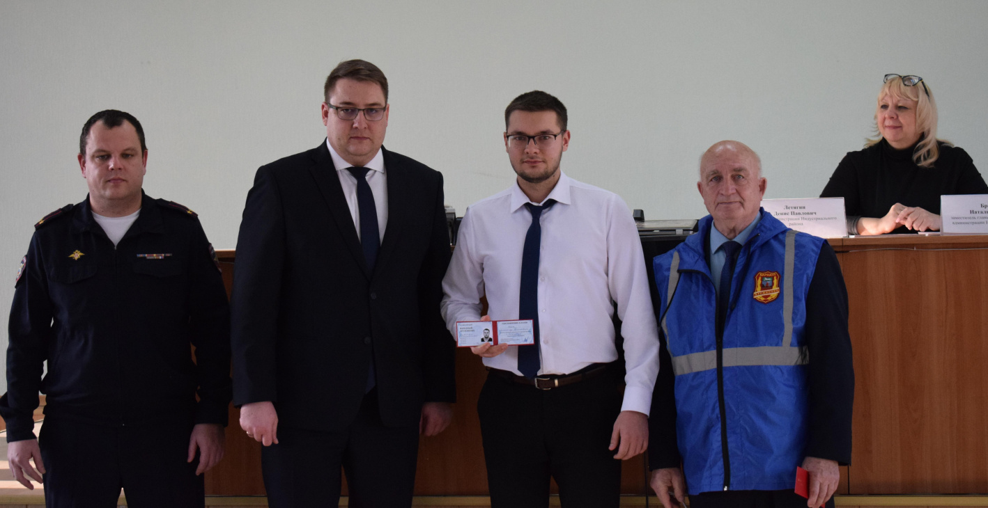 На мероприятии глава администрации Индустриального района Денис Летягин, командир отряда по Индустриальному району БГОО «Народная дружина «Барнаульская» Юрий Люст вручили удостоверения новым добровольцам.