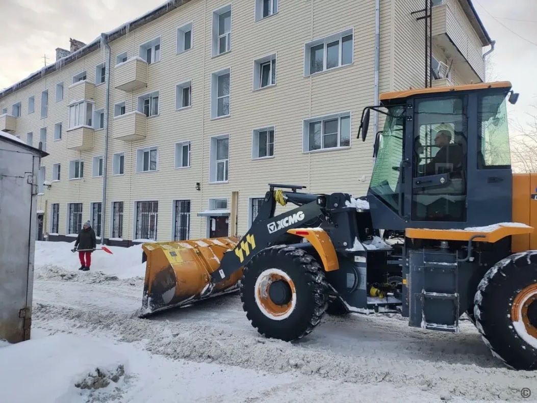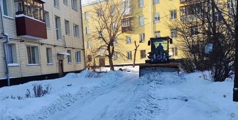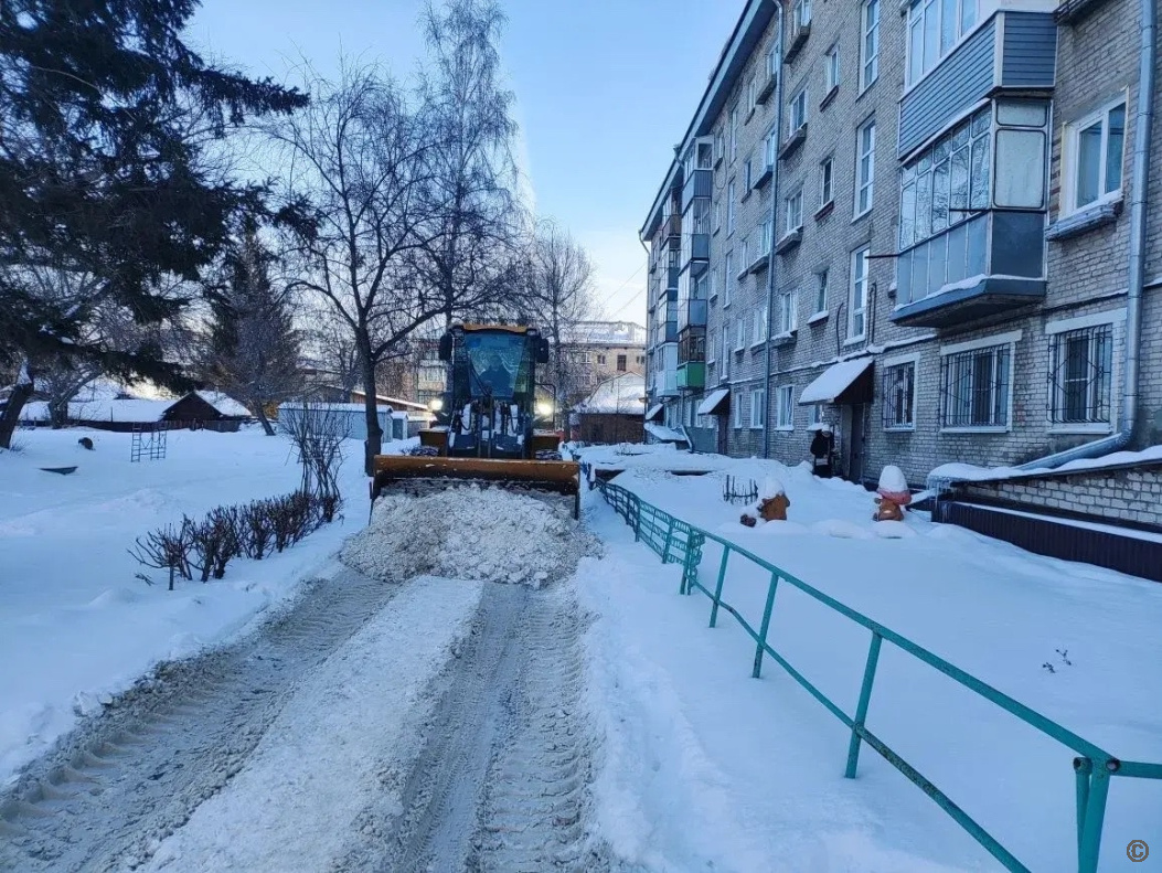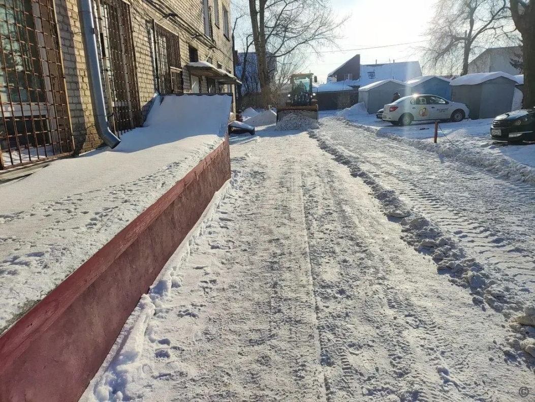 В Октябрьском районе продолжается плановая уборка снега и наледи на придомовых территориях и кровлях многоквартирных домов.
