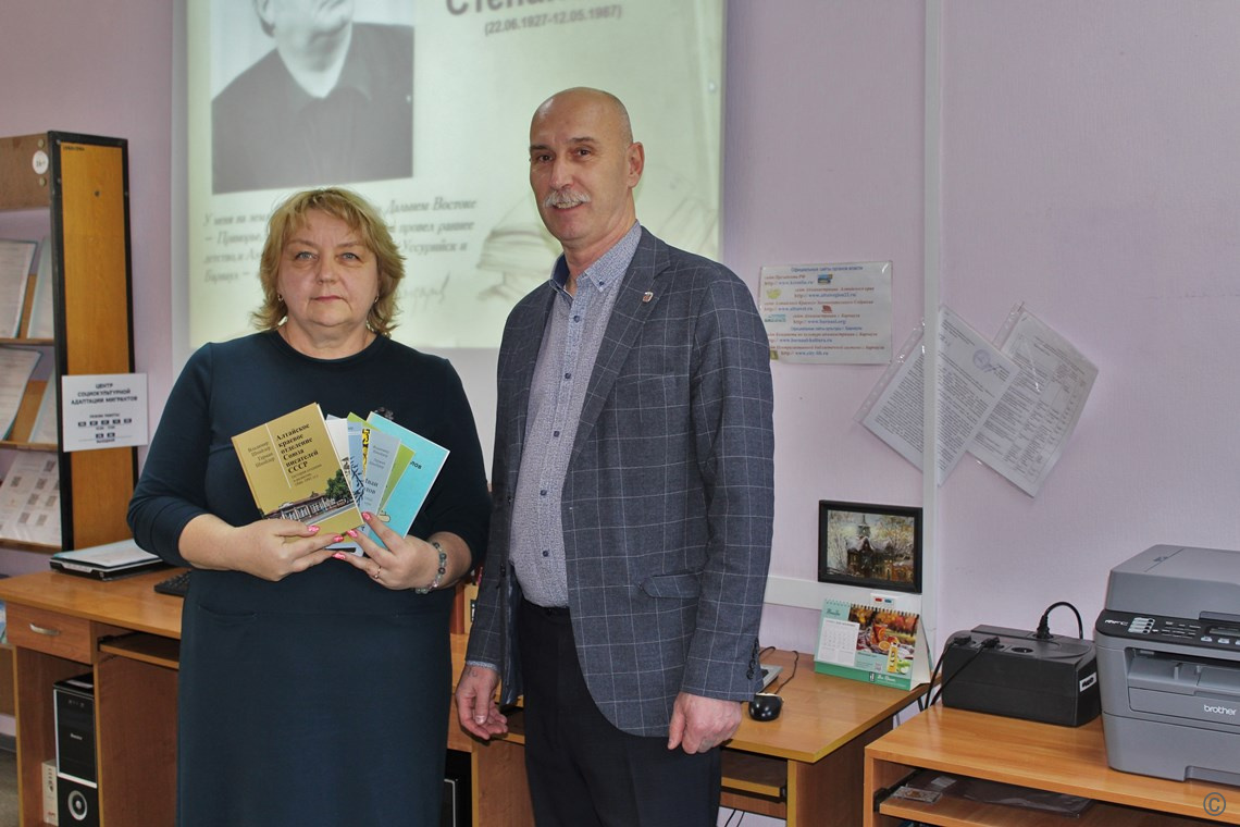 Ответственный секретарь Алтайского регионального отделения Анна Самойлова высоко оценила тесное взаимодействие библиотек и регионального отделения Союза писателей России по воспитанию патриотизма и любви к своей малой Родине. За активную работу по сохранению культурного наследия региона она вручила Благодарность регионального отделения директору ЦБС г. Барнаула Юлии Базуевой и заведующей библиотеки Светлане Тимченко.