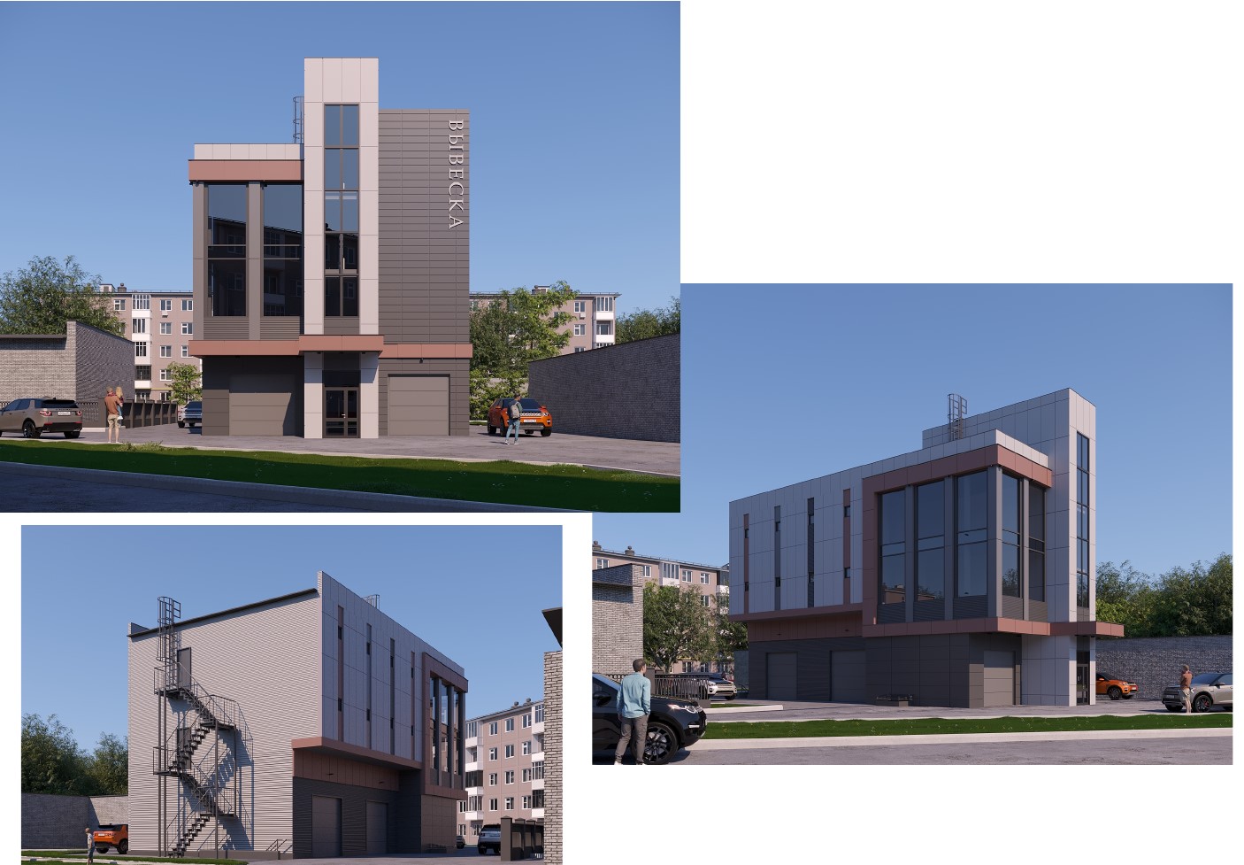 Архитектор Владимир Золотов также представил ещё два варианта архитектурно—пространственного решения здания. В другом варианте у офисного здания более современный вид, с крупным масштабом архитектурных деталей, большим объёмом остекления. При отделке фасада использованы жёлты кирпич и композитные материалы серого цвета и имитирующие дерево.