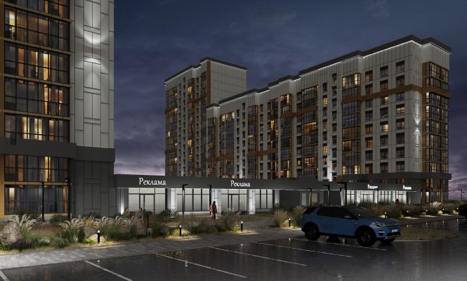 Ночная подсветка домов — сдержанная, подчёркивающая силуэты и торцы зданий. Более активное освещение будет у общественных помещений.