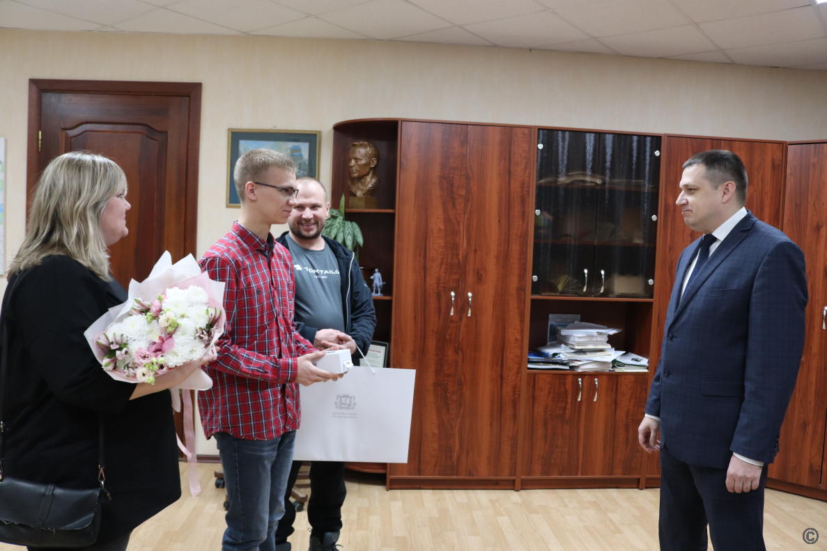 Сегодня Евгений Авраменко пригласил семью Надежкиных в администрацию района, где в тёплой душевной обстановке поздравил мальчика и его родителей с наступающим Новым годом и вручил Льву желанный подарок.