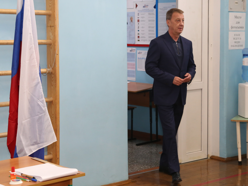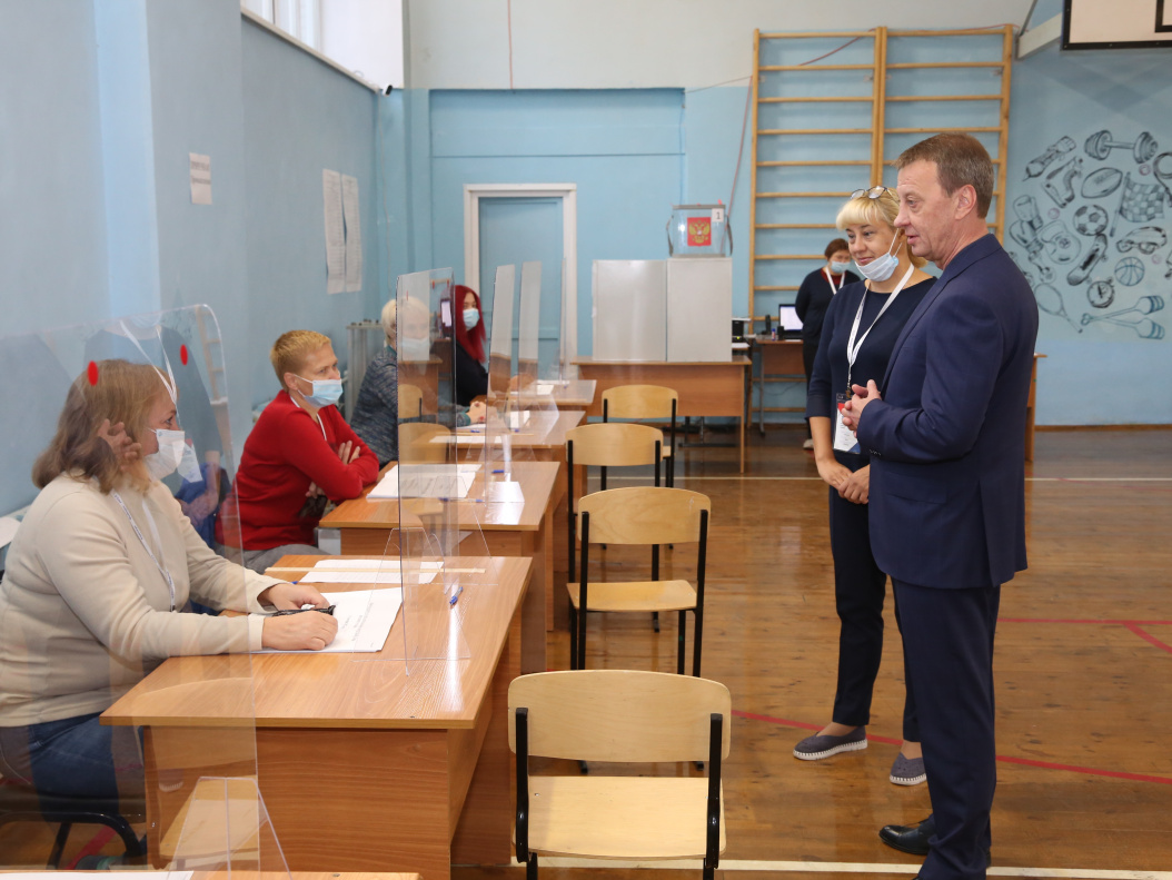 ОбществоГлава Барнаула Вячеслав Франк утром в единый день голосования, 11 сентября, ознакомился с работой избирательной комиссии №227, расположенной в городской школе №1.