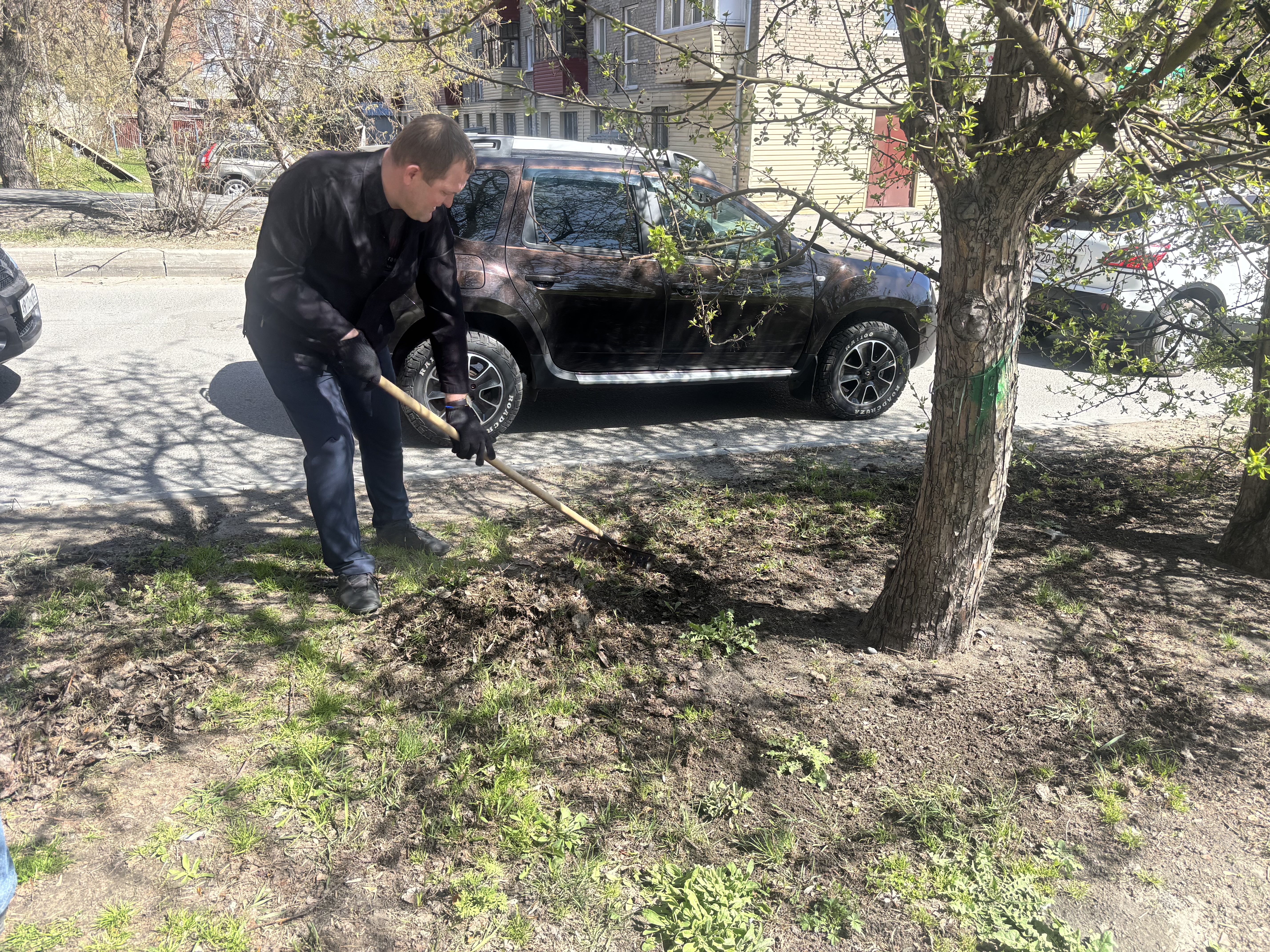 Совместно с муниципальными служащими он приводил в порядок участок улицы по Максима Горького.