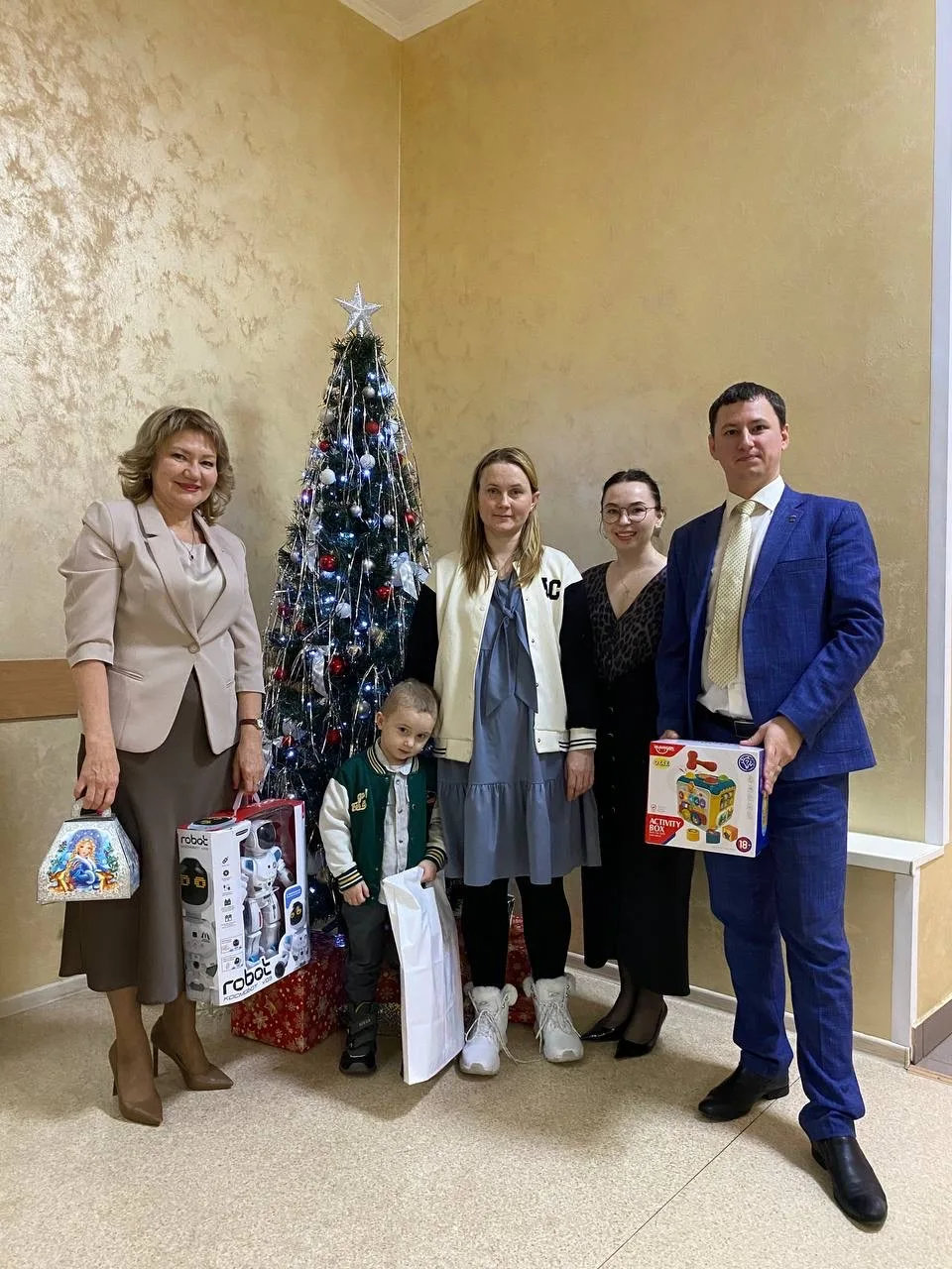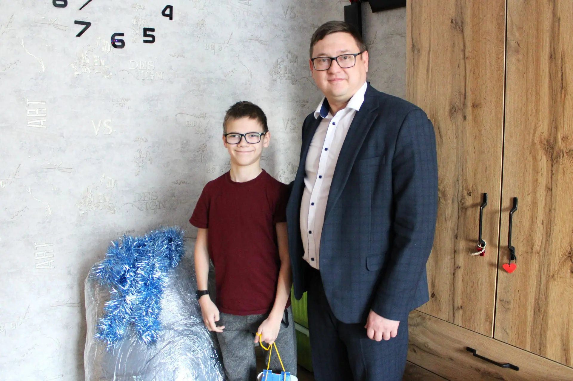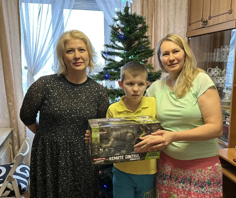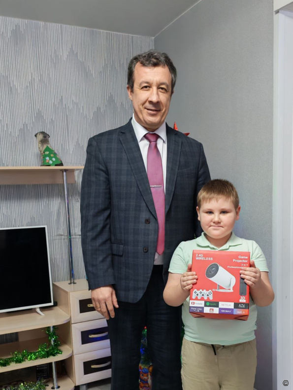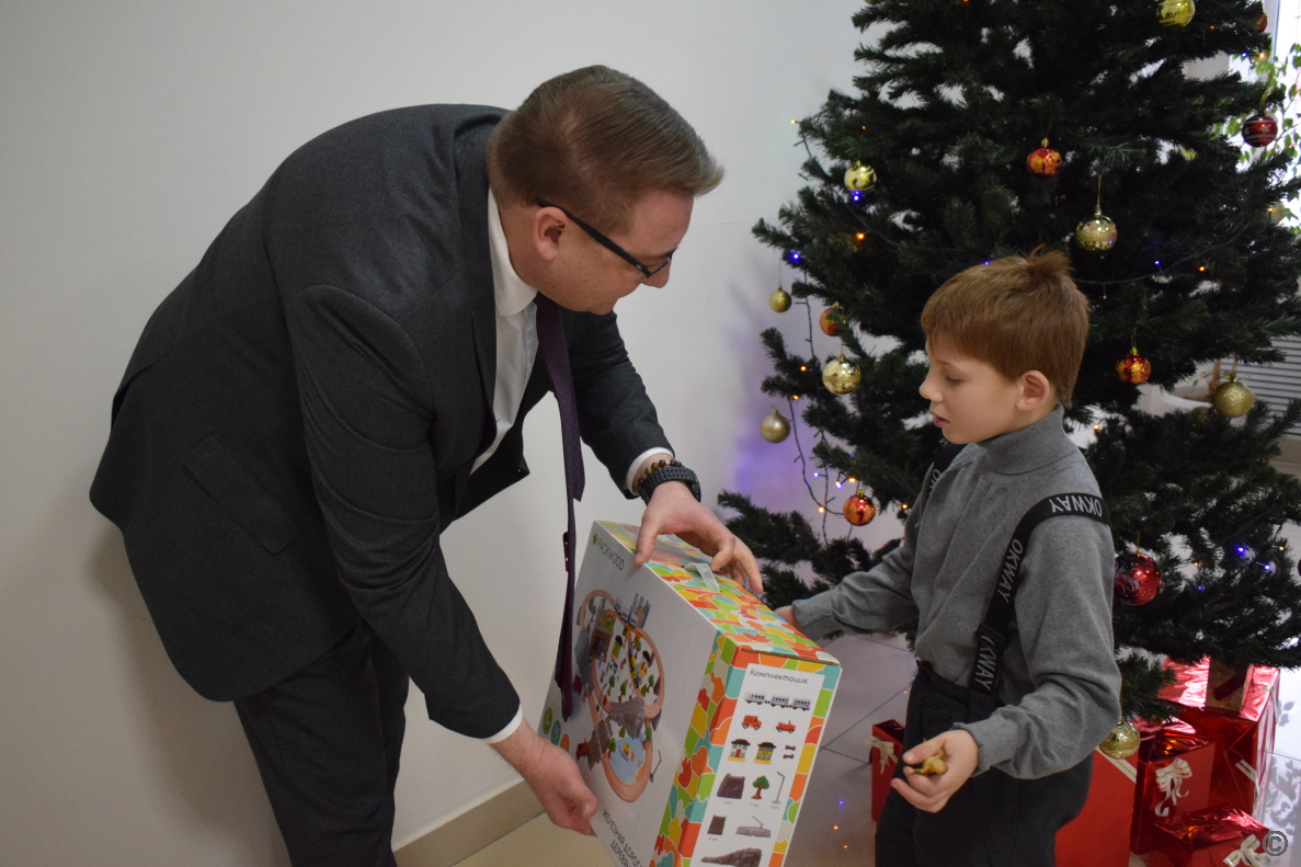 Заместитель главы администрации города по городскому хозяйству Сергей Татьянин поздравил с наступающим Новым годом и подарил конструктор 10-летнему Сереже.