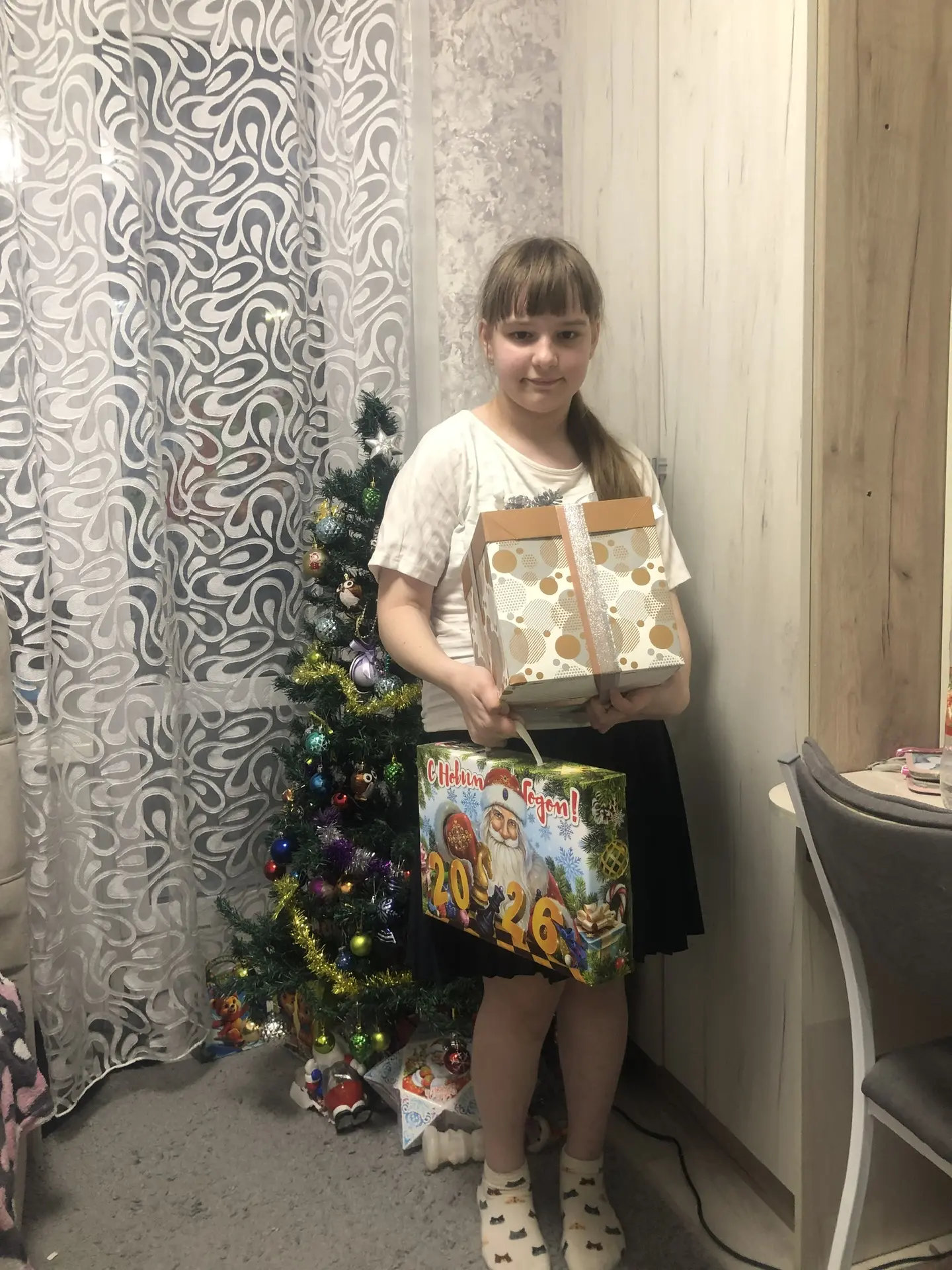 Дети загадали самые разные подарки — от творческих наборов до современных гаджетов. Среди детских желаний: телескоп для любознательного Руслана, мечтающего изучать созвездия; беспроводные наушники для тринадцатилетнего Даниила (13 лет), который любит аудиорассказы и музыку; говорящая книга-«нажималка» для Даши (7 лет); робот-собака для Валерии (12 лет); «Яндекс.Станция Алиса» для семнадцатилетней Виктории; конструктор для шестнадцатилетнего Александра, увлечённого сборкой моделей и многое другое.
