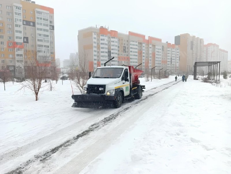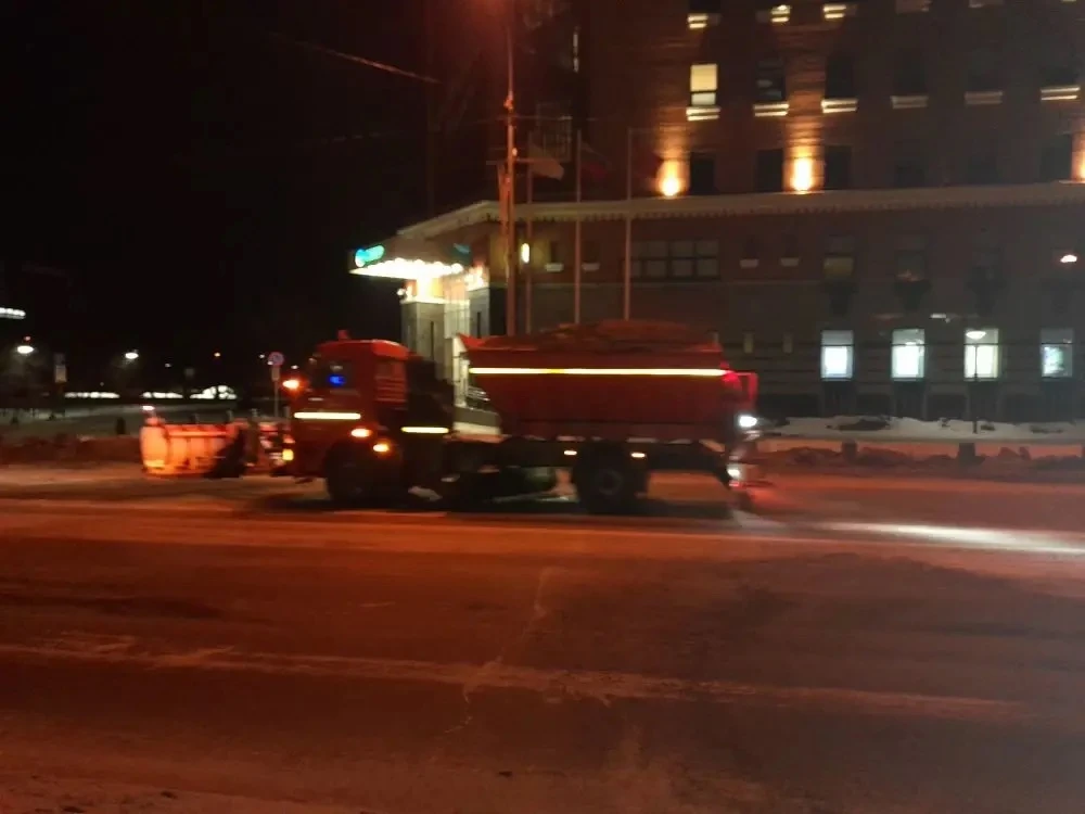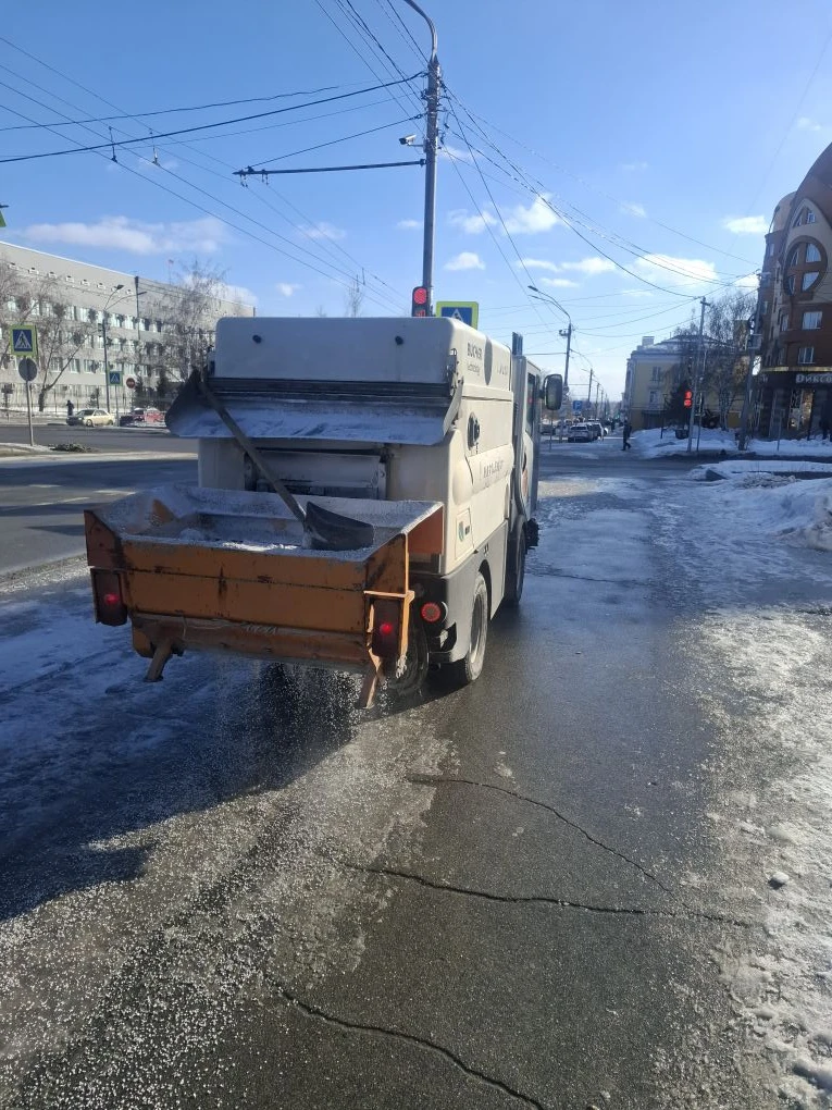 Городские службы проводят противогололедную обработку улично-дорожной сети и общественных пространств