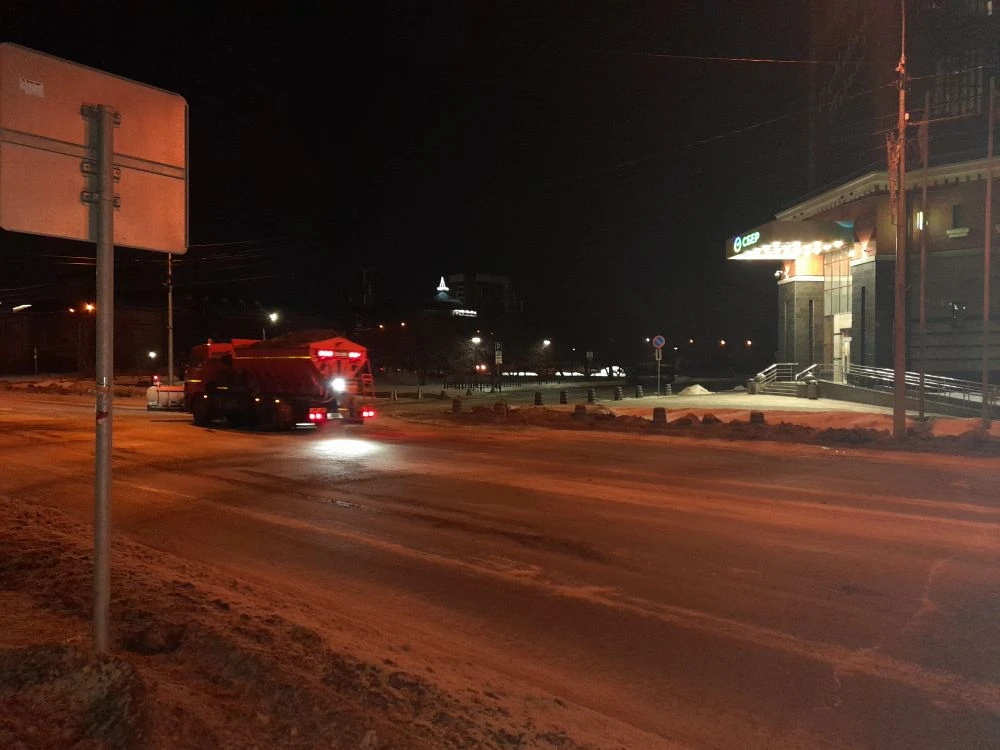 В связи с неблагоприятными погодными условиями, выпадением осадков накануне и последующим переходом в минусовые температуры, МБУ «Автодорстрой» в ночную смену с 11 на 12 февраля проводило обработку реагентами улично-дорожной сети. Для этого было задействовано шесть бригад во всех районах города.