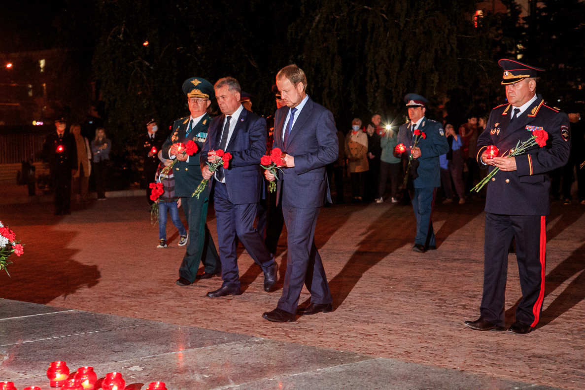 Накануне Дня памяти и скорби, 21 июня в 23.00, Барнаул присоединился к общероссийской акции «Свеча памяти». В ней приняли участие Губернатор Алтайского края Виктор Томенко, председатель АКЗС Александр Романенко, начальник ГУ МВД России по Алтайскому краю Андрей Подолян, начальник УФСБ России по Алтайскому края Юрий Мороз, глава Барнаула Вячеслав Франк, представители органов власти, силовых структур.