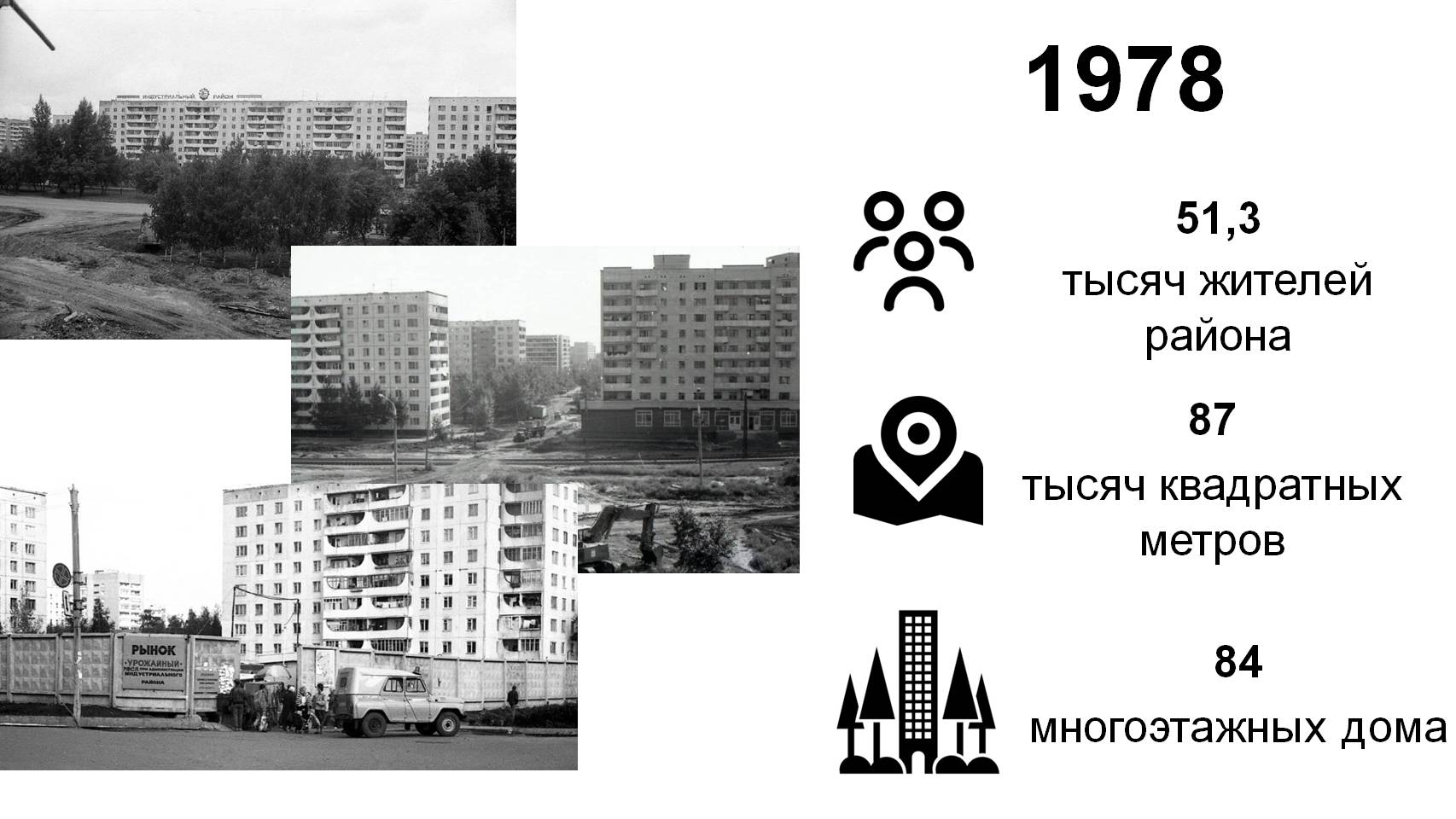 Тогда, в 1978 году, район занимал площадь в 87 тысяч квадратных метров, где проживали 51,3 тысяч человек. На тот момент в его состав входили села Моховое и Малая Штабка, позже отнесенные к Павловскому району. Сегодня Индустриальный является самой крупной административно-территориальной единицей Барнаула – разместившись на площади в 129,9 тысяч квадратных километров, он включает в себя село и станцию Власиха, поселки Лесной, Новомихайловка, Пригородный, 39 микрорайонов с жилым фондом свыше 12 тысяч индивидуальных домов и более 750 многоэтажек. На протяжении многих лет Индустриальный удерживает лидерство по объемам возводимого жилья и является главной строительной площадкой города.
