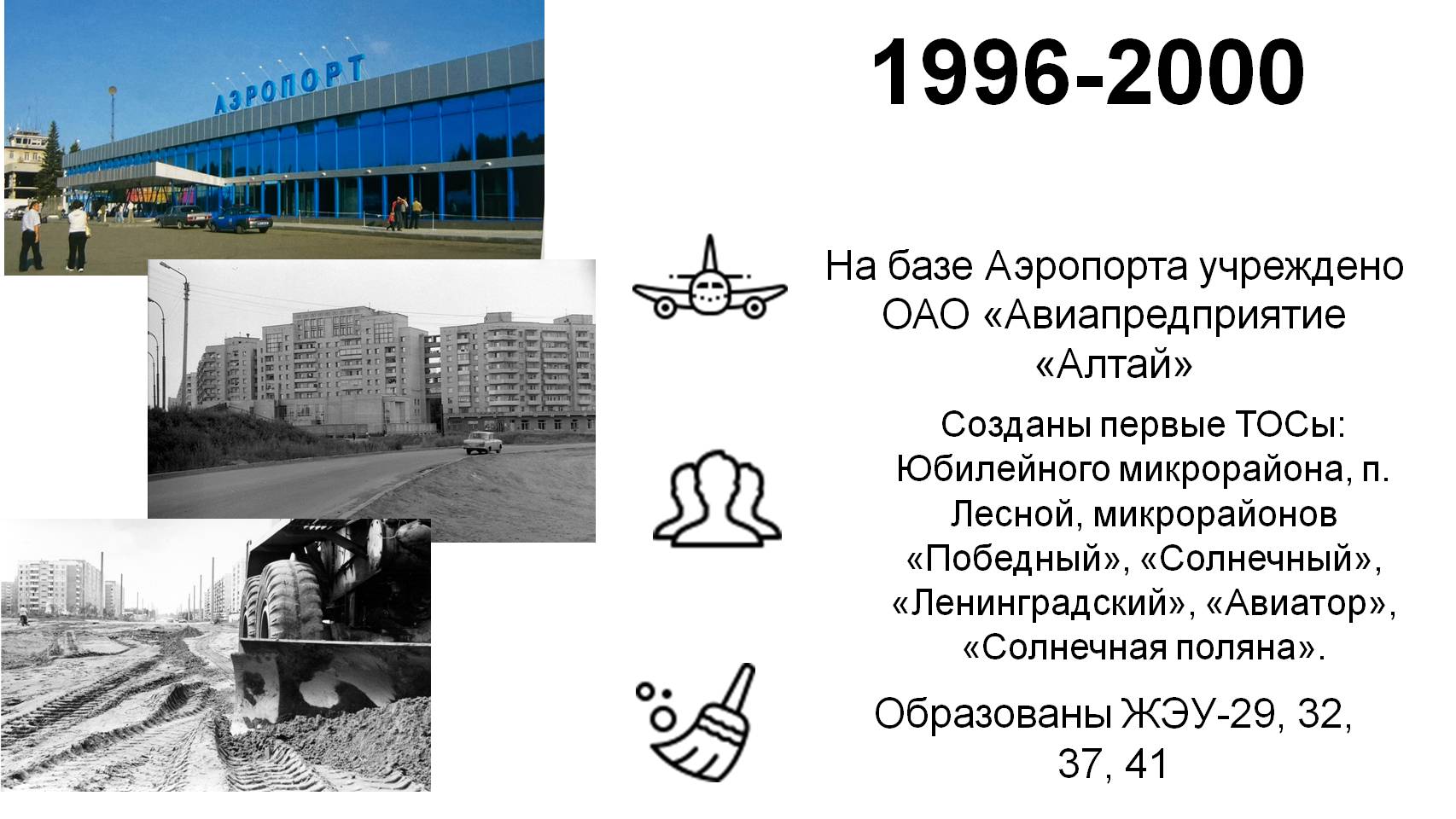 Особенность района еще и в том, что именно на его территории находятся воздушные ворота города. Появление первого аэропорта в Барнауле относится к 1937 году, когда в столице только что образовавшегося Алтайского края было создано авиаподразделение – авиационное звено самолетов ПО-2. В 1997 году было создано АО «Авиапредприятие «Алтай», а с 2010 года Международный аэропорт «Барнаул» носит имя прославленного земляка Германа Титова.