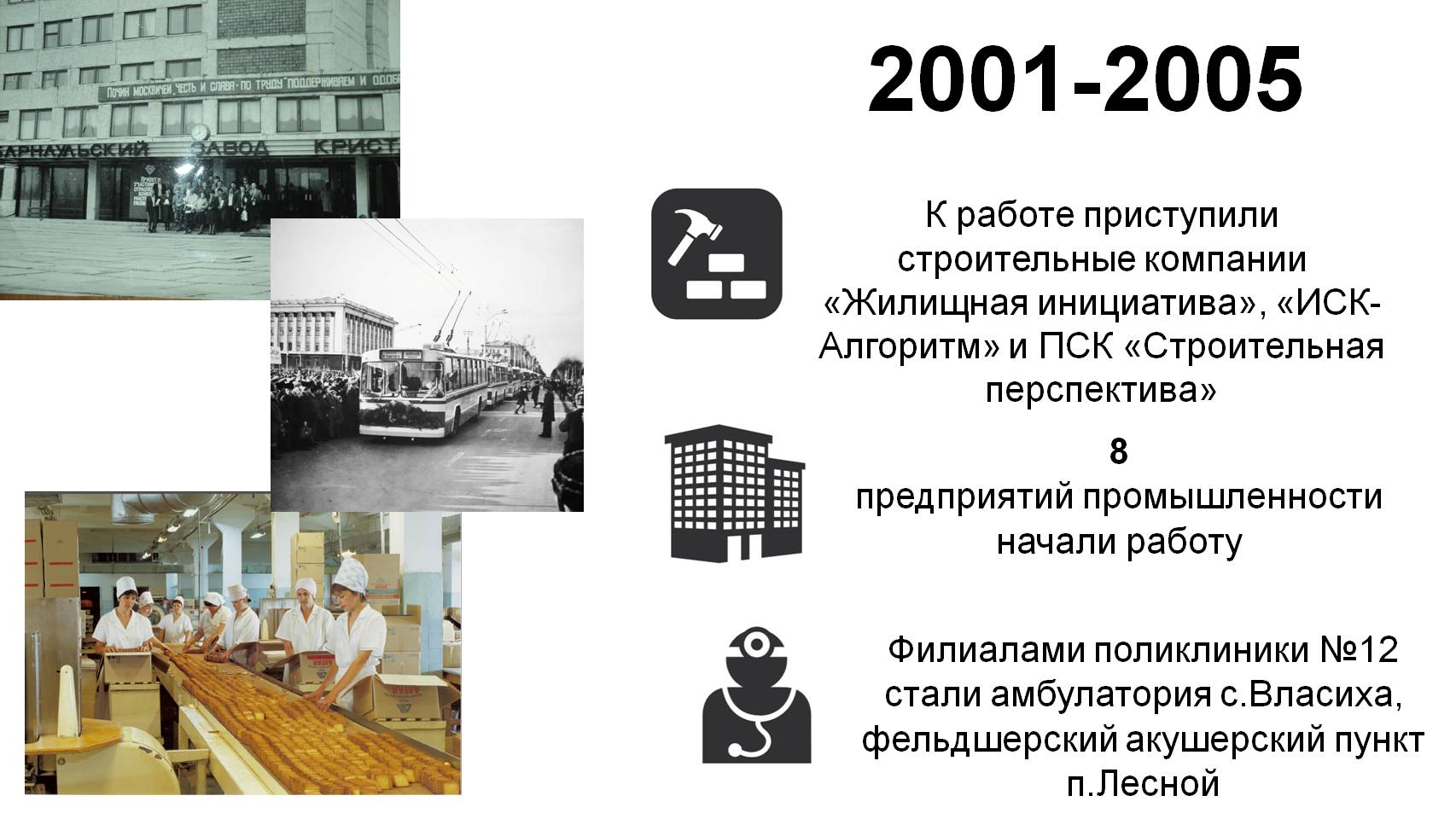 Если взять промышленный комплекс, то его объемы идут опережающими темпами. Есть предприятия, расположенные в районе, которые известны на всю Россию, в частности, «Союзмука», выпускающие до 240 тонн зерна в сутки. С хорошими темпами работают «Алтайские макароны», «Барнаульский пивоваренный завод». По качеству у этой продукции конкурентов нет.