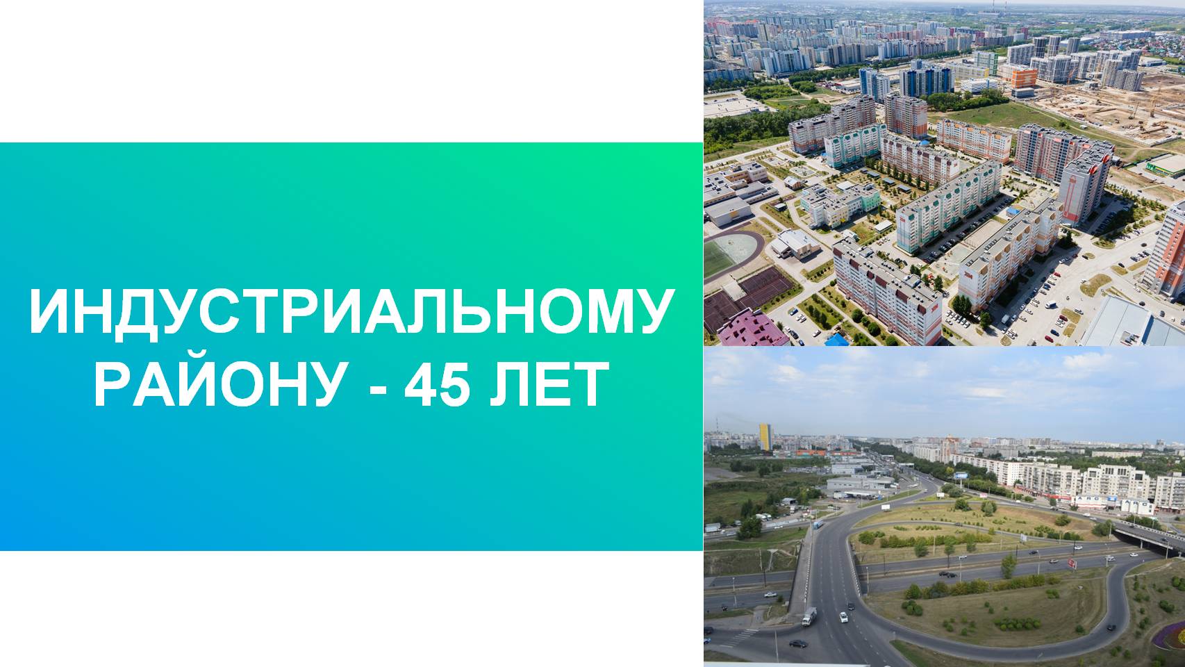 «Индустриальный район – самый молодой район города. Он растет и развивается. Работают предприятия, строятся школы и детские сады, продолжается застройка новых кварталов, прокладываются новые транспортные маршруты. Все это делает его привлекательным и дает стимул для его дальнейшего развития».