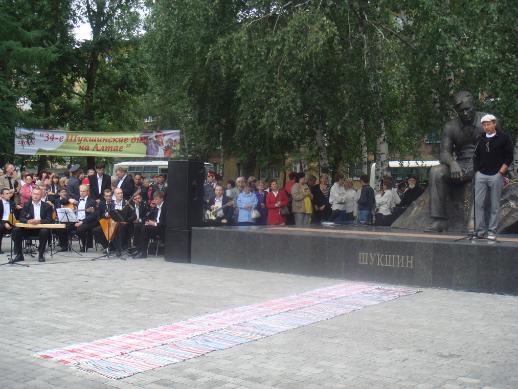 Сегодня памятник Василию Макаровичу Шукшину считается визитной карточкой Ленинского района. Именно сюда на открытие Шукшинских чтений съезжаются самые высокие гости, а накануне проводятся малые Шукшинские чтения.