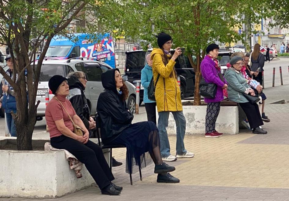В помещении Совета ТОС Западного микрорайона состоялась встреча с представителями краевой администрации, активными жителями и волонтёрами. Также общественники организовали акцию по раздаче георгиевских лент.