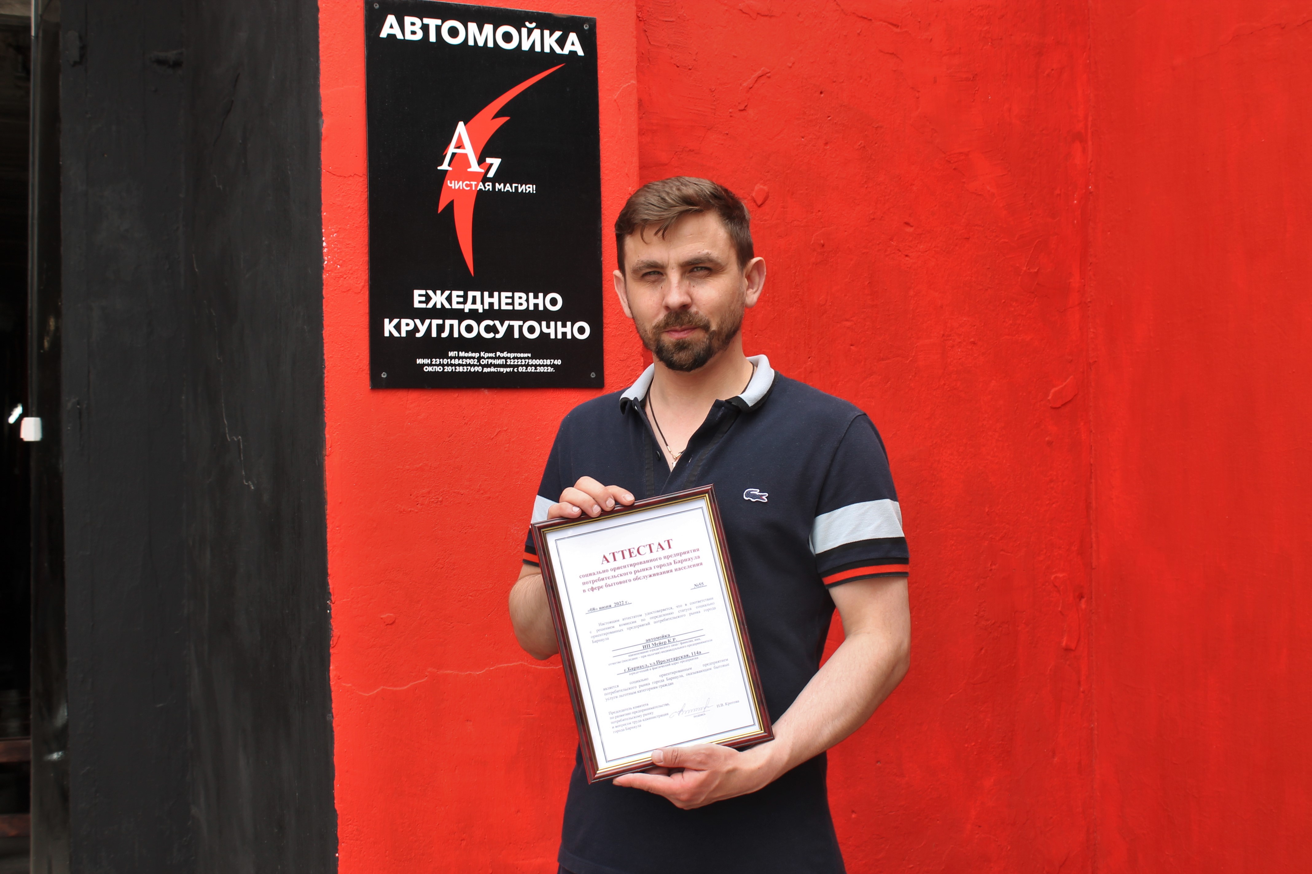 7 июня в Барнауле открылось еще одно социально ориентированное предприятие бытового обслуживания. Это автомойка «А7» индивидуального предпринимателя Мейера Криса Робертовича, которая находится по ул.Пролетарской, 114а.