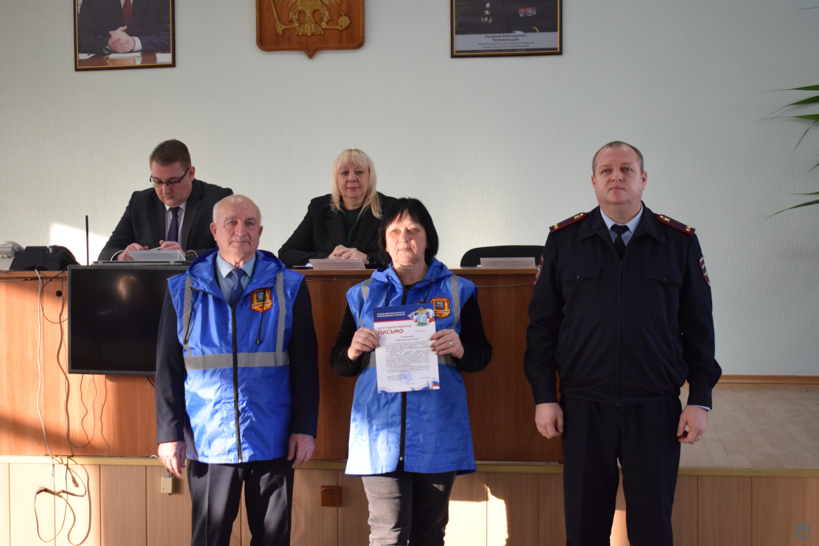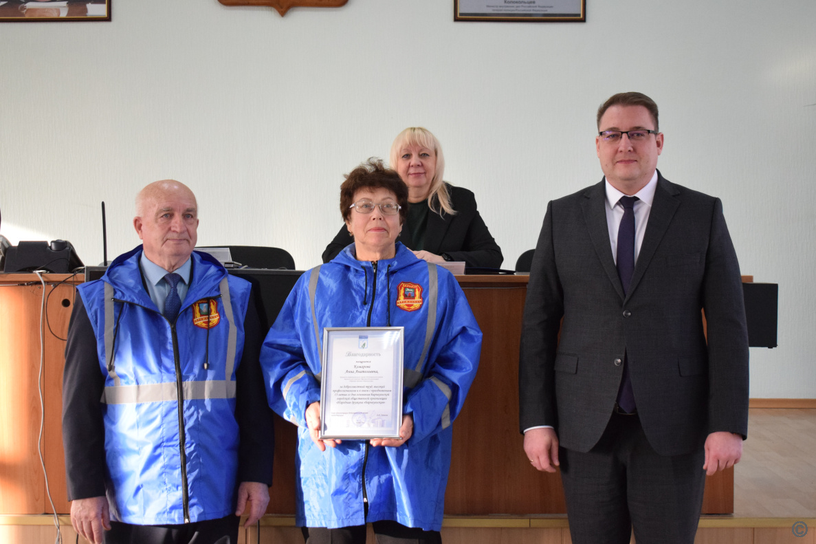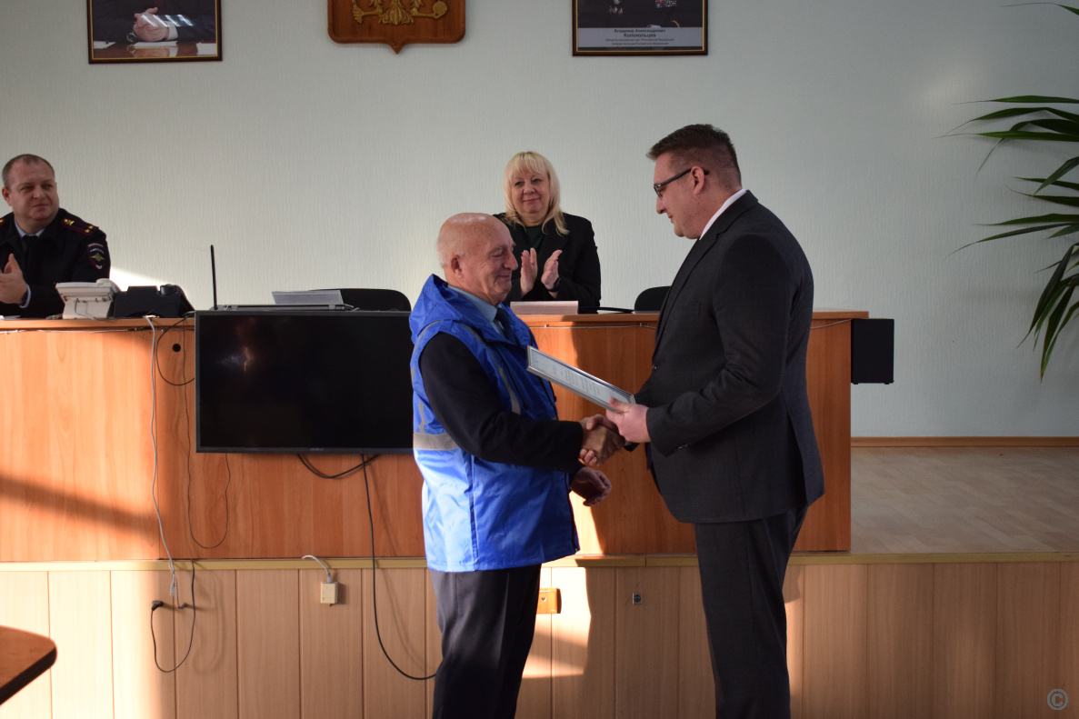 Денис Летягин выразил благодарность дружинникам за их неоценимый вклад в обеспечение общественного порядка и безопасности жителей на территории района и вручил дружинникам заслуженные награды.