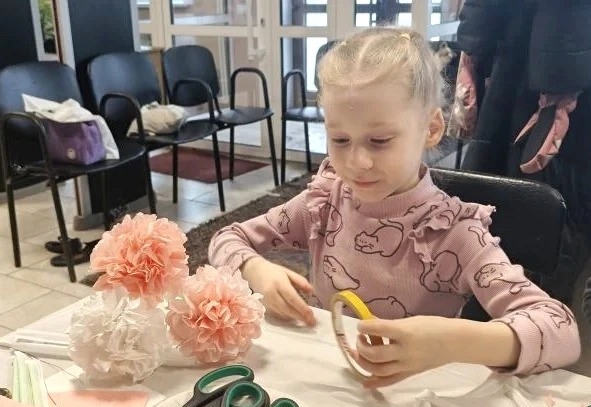 Участники мероприятия изготовили оригинальные букеты цветов из обычных салфеток, проявили креативность, провели время в позитивной атмосфере и зарядились хорошим настроением.