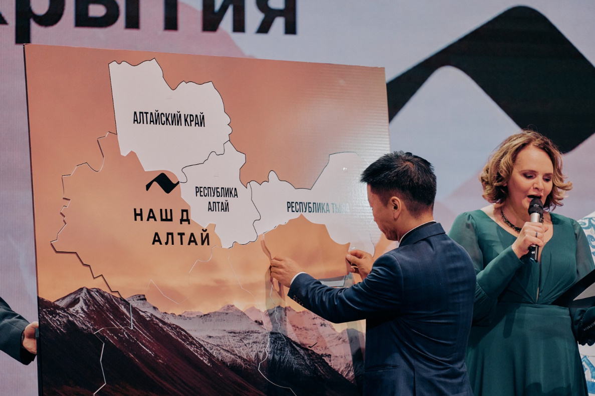 Участниками фестиваля стали шесть творческих делегаций из Республик Алтай и Тыва, трех аймаков Монголии, а также профессиональные творческие коллективы Алтайского края. Представители делегаций вышли на сцену, где был представлен арт-объект «Карта Алтай». На карте отмечены все субъекты, входящие в Большой Алтай. С помощью пазлов руководители делегация выложили эмблему фестиваля.