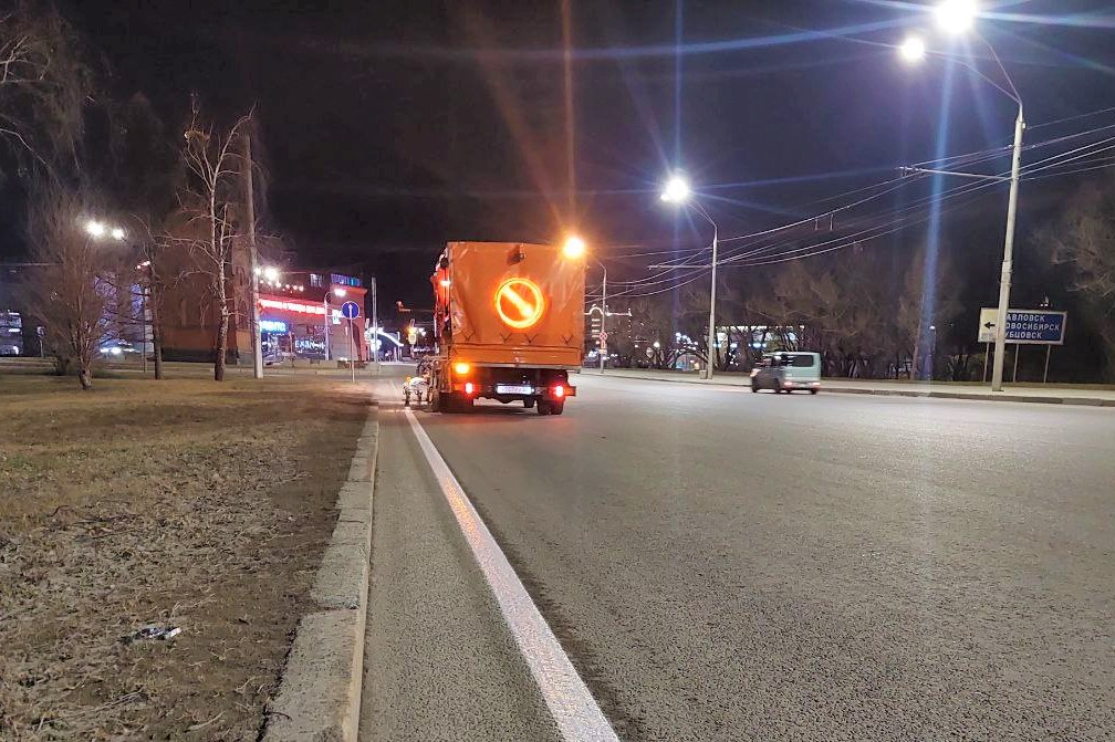 С 25 апреля в Барнауле подрядная организация приступила к нанесению горизонтальной дорожной разметки.