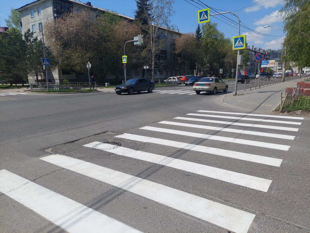 Также рабочие обновили пешеходные переходы на проспекте Комсомольском в районе пересечения с улицами Советской и Союза Республик.