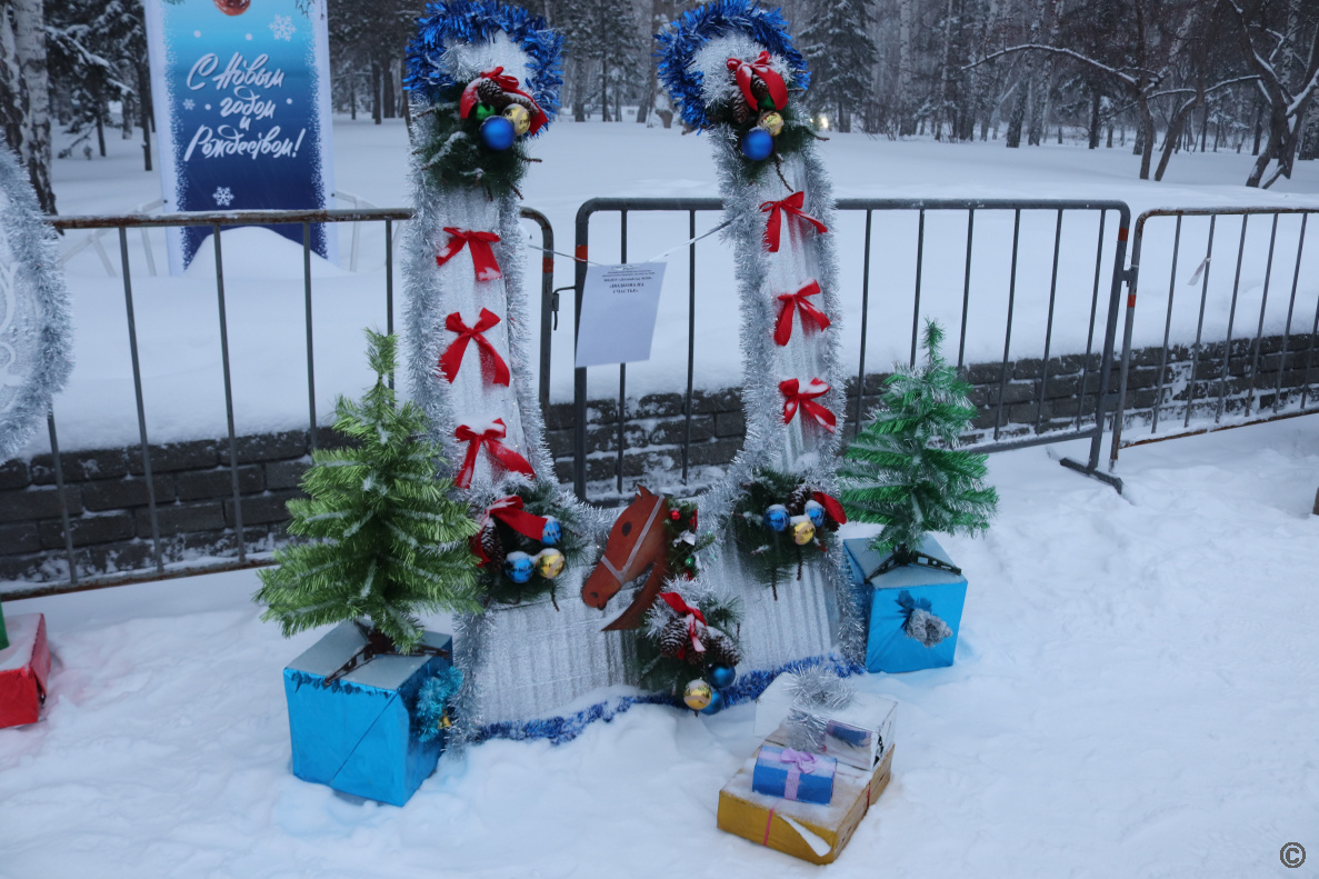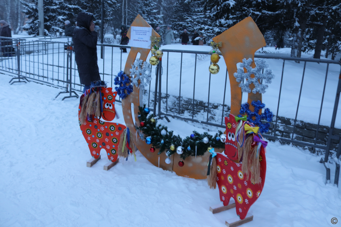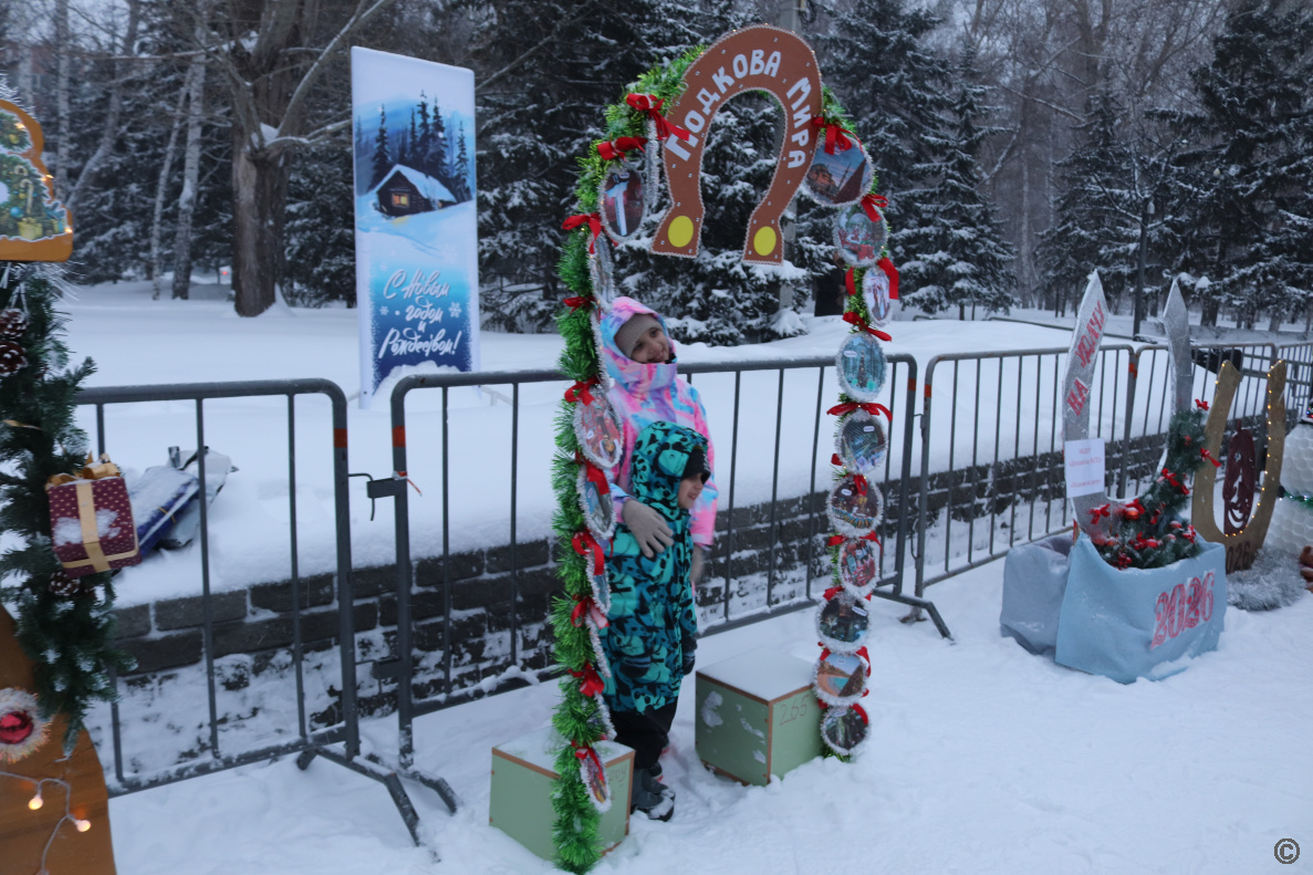 Жителей ждала насыщенная развлекательная программа: встреча с Дедом Морозом и Снегурочкой, весёлые игры, зажигательные танцы, была организована выставка-конкурс тематических композиций «Подкова на счастье».