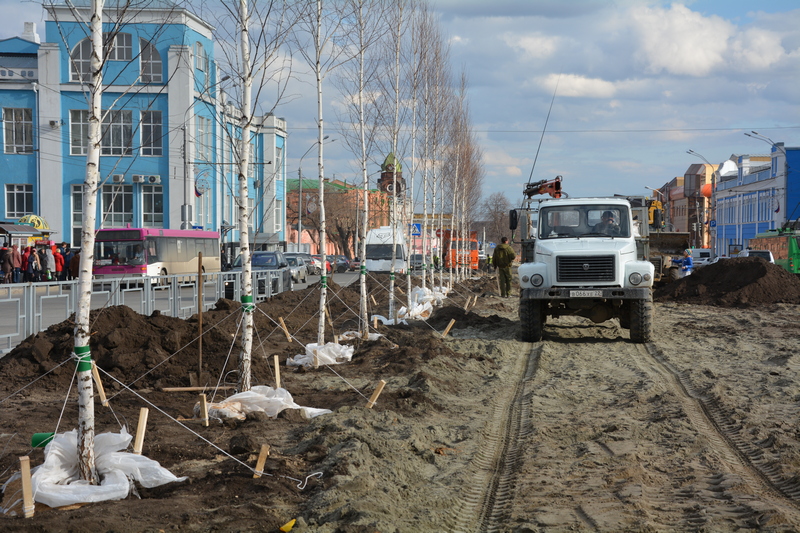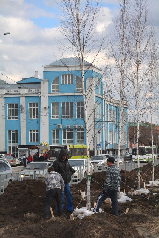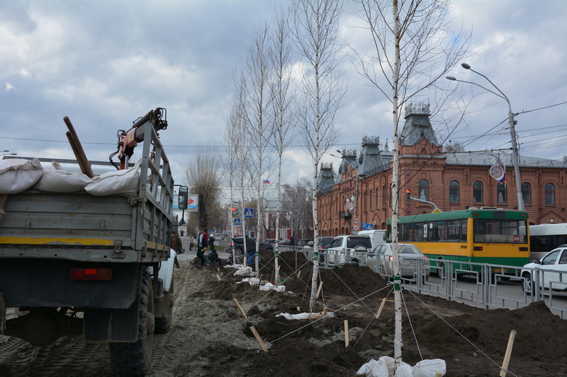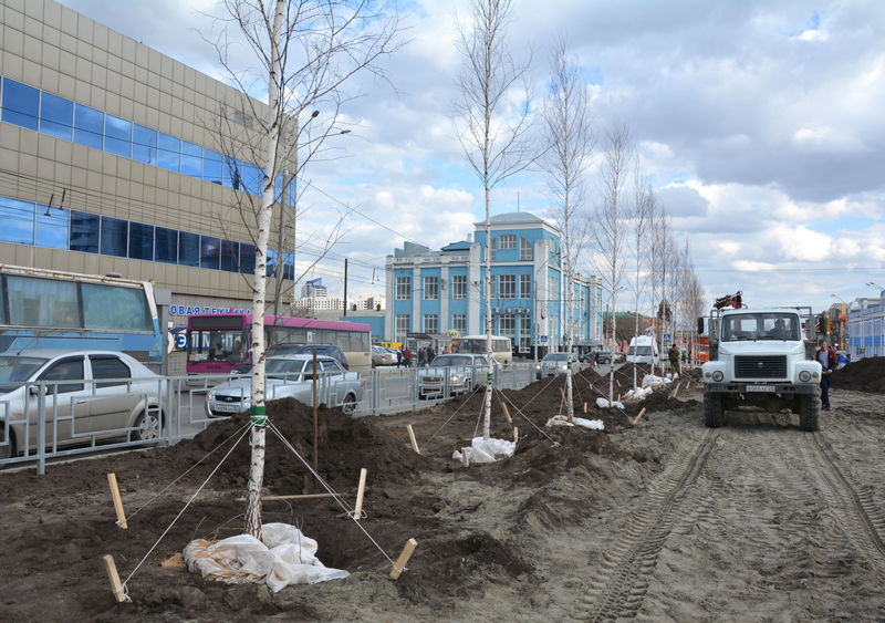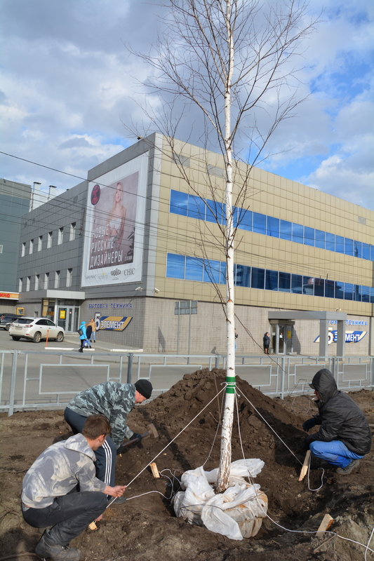 На проспекте Ленина начали высаживать березы