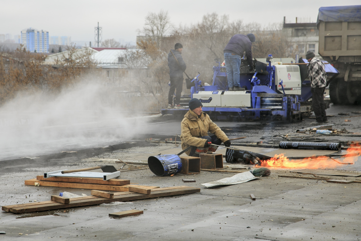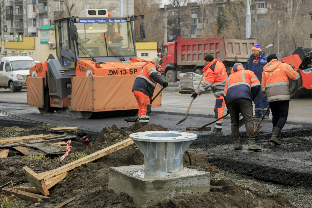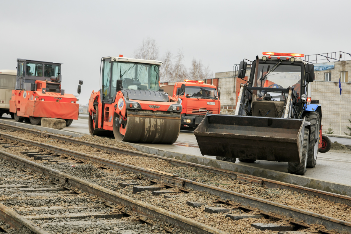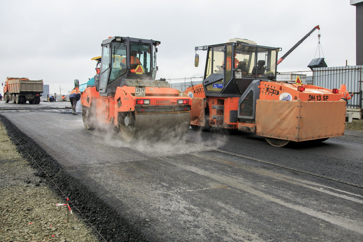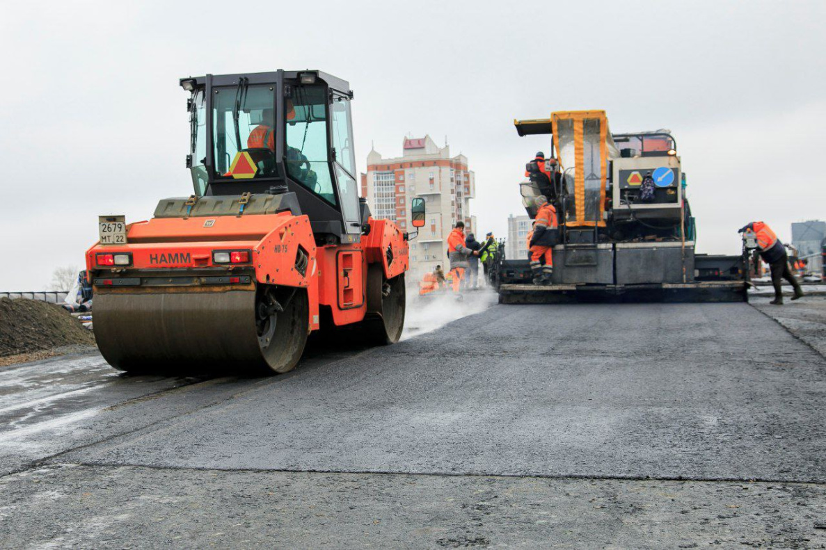 Подрядчик ООО «Барнаульское ДСУ №4» продолжает укладывать асфальт на путепроводе по проспекту Ленина.
