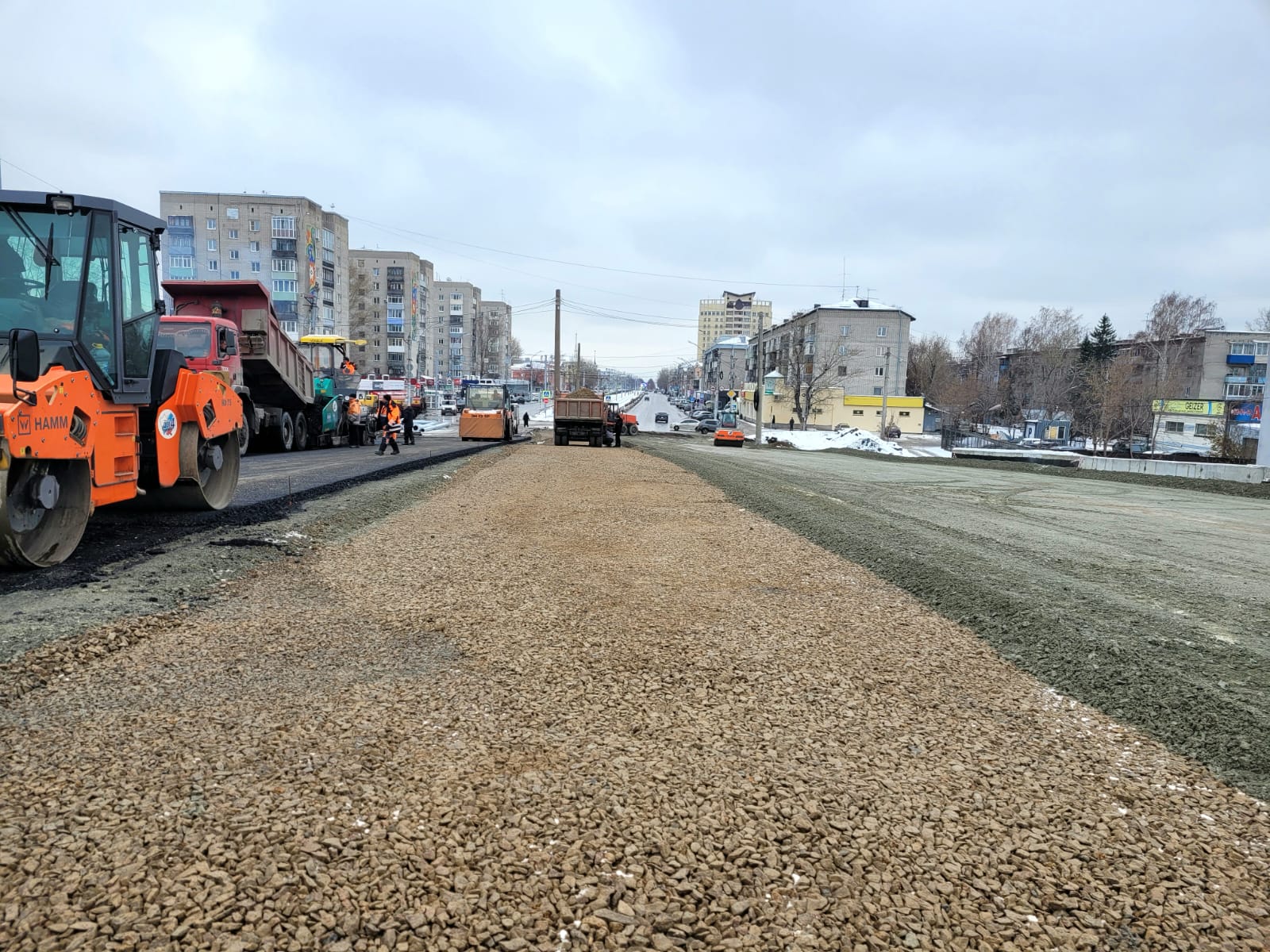 Со стороны ТЦ «Пионер» рабочие МУП «Горэлектротранс» частично демонтировали разворотное кольцо и дорожники приступили к устройству подъездных путей к мосту. В настоящее время укладываются промежуточные слои дорожной одежды, а именно основание из черного крупнофракционного щебня и нижние слои асфальта. Разбор дорожного кольца продолжается.