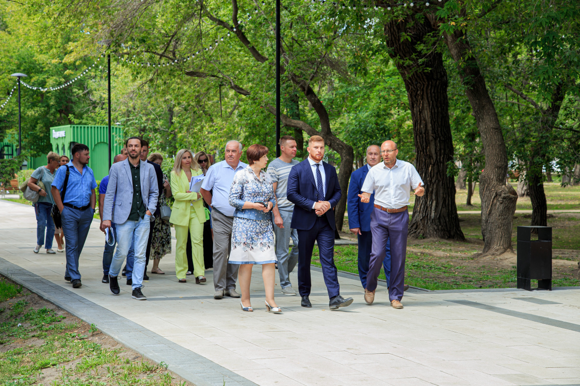 Заместитель главы администрации города по дорожному хозяйству и транспорту Антон Шеломенцев совместно с председателем Барнаульской городской Думы Галиной Буевич, главой администрации Октябрьского района Юрием Асеевым, руководителем КГКУ «Фонд имущества Алтайского края» Владиславом Вакаевым, депутатами Барнаульской городской Думы, представителями проектной и подрядной организаций обсудили ход работ третьего этапа благоустройства зеленой зоны.