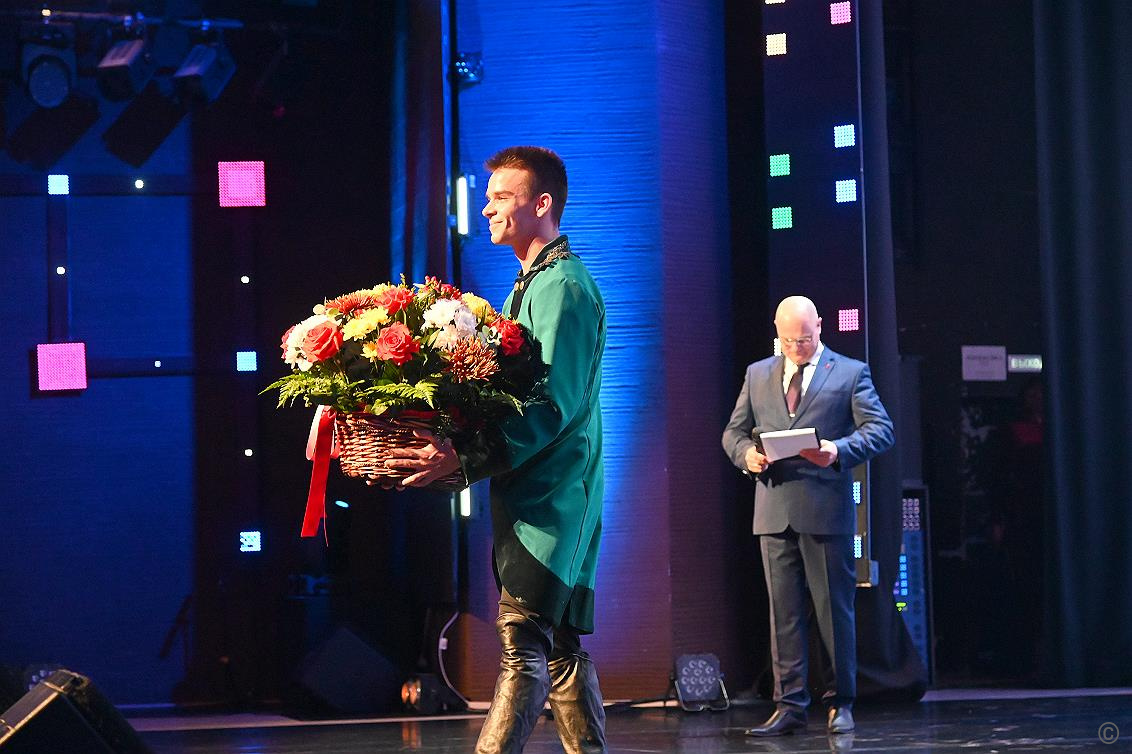 От имени главы города для присутствующих в зале женщин на сцену вынесли корзину с цветами, а потом начался творческий подарок - концертная программа Государственного ансамбля песни и танца «АЛТАЙ» имени А.Ф. Березикова.